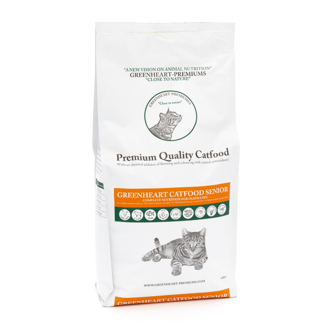 Greenheart catfood Senior is kattenvoer, speciaal ontwikkeld voor de oudere kat met een laag activiteitenniveau. Greenheart catfood Senior bevat extra vitamine C & E. Omdat oudere katten minder actief zijn en hun stofwisseling vertraagt, hebben ze over het algemeen minder calorieën en energie nodig. Greenheart catfood Senior brokjes bevatten 27% eiwit en 12% vet. Rijk aan kip met lam en vis. Het is een klein hartje brokje dat makkelijke geaccepteerd wordt.