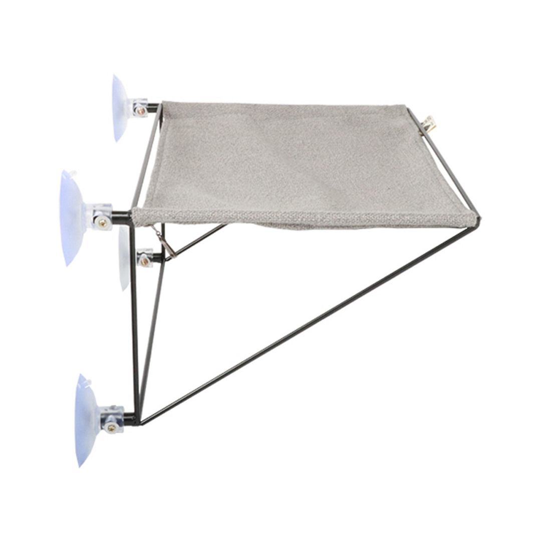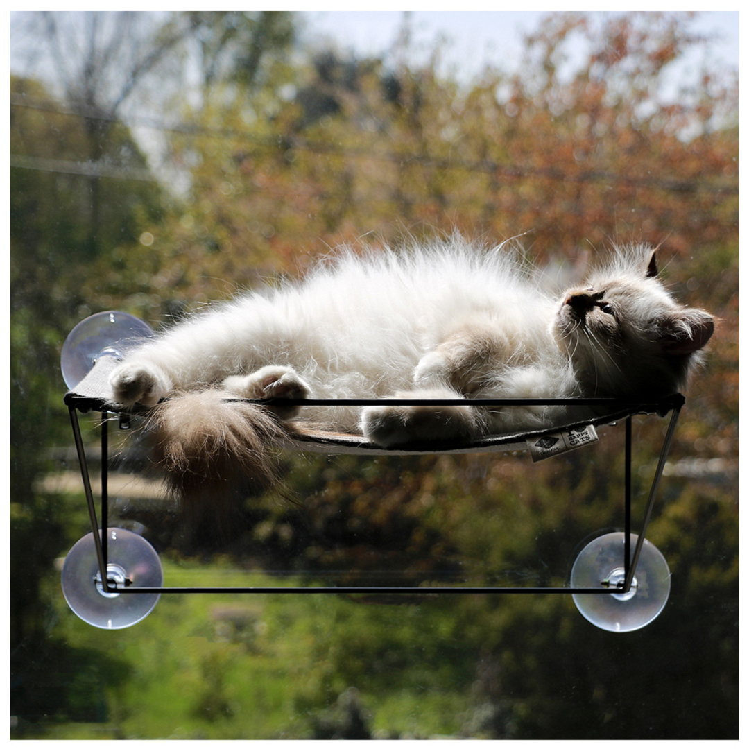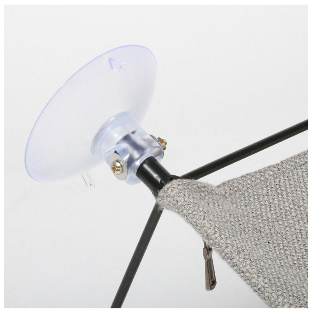 Door haar metalen kader heeft de hangmat een stevige structuur. Er zijn 4 sterke zuignappen bijgevoegd (max. gewicht 10kg) waarmee de hangmat aan eender welk raam kan worden vastgemaakt. Het ligoppervlak bestaat uit een mooie interieurstof en kan met ritsen aan het frame worden bevestigd.