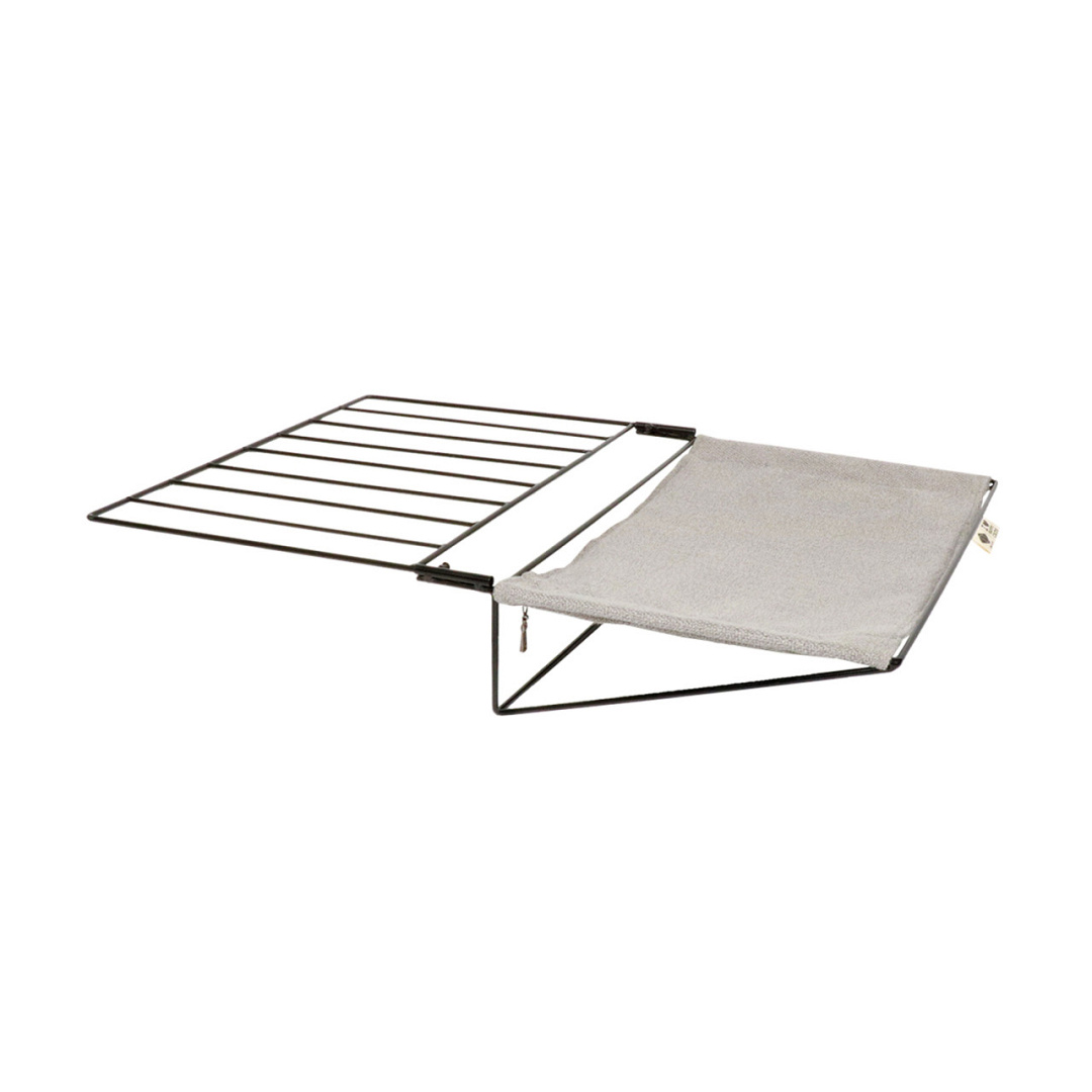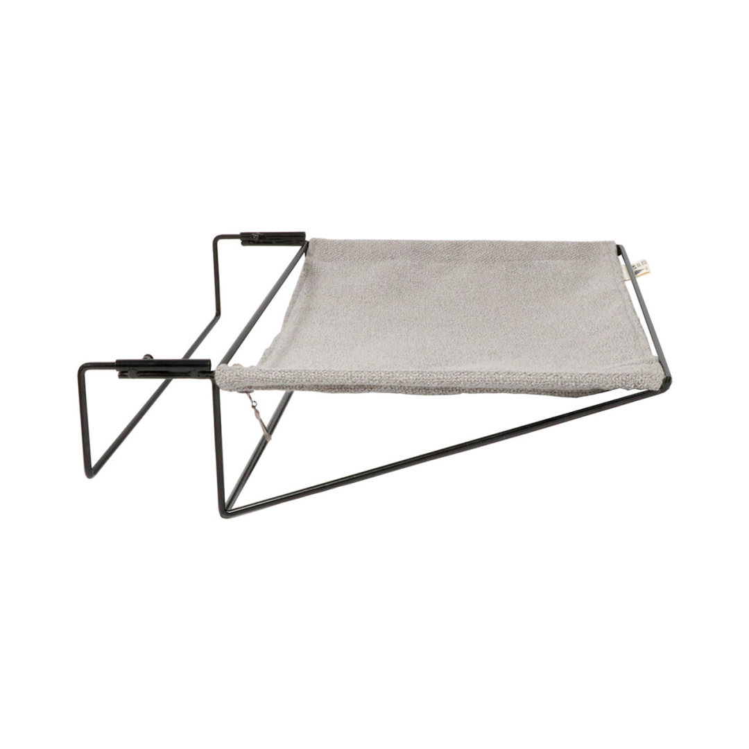 Dankzij de verstelbare klemmen kan ze bij de meeste radiatorontwerpen en bedtypes worden gebruikt. Door haar metalen kader heeft de hangmat een stevige structuur. Het ligoppervlak bestaat uit een mooie interieurstof en kan met ritsen aan het frame worden bevestigd (max. gewicht 10kg).