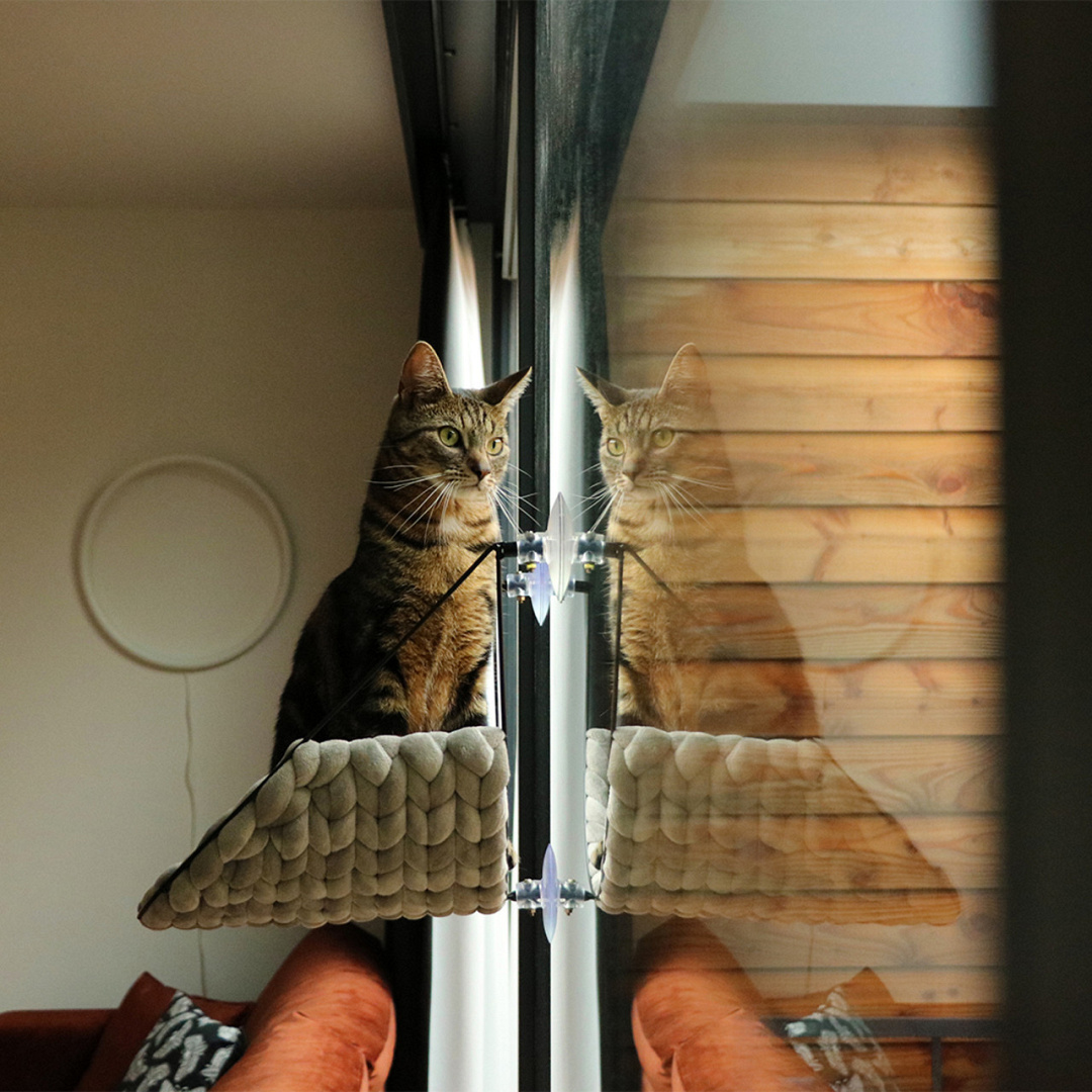 Heerlijke kattenslaapplek voor aan het raam. Zo kan jouw kat alles, binnen en buiten, in de gaten houden.