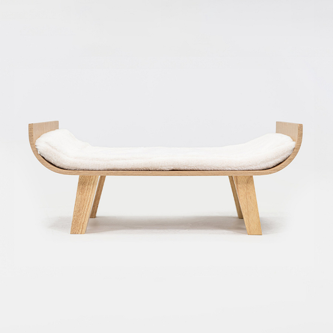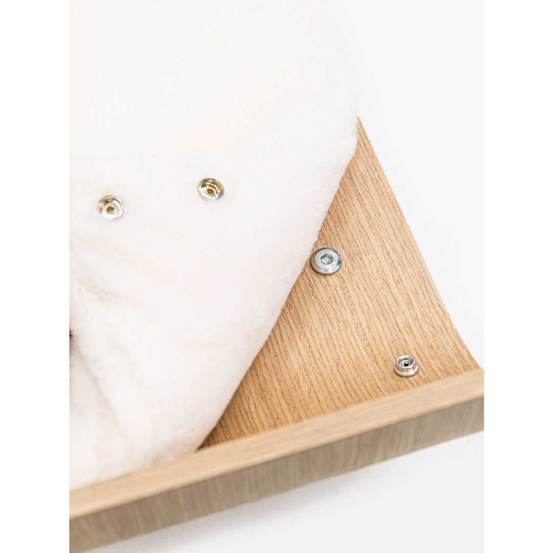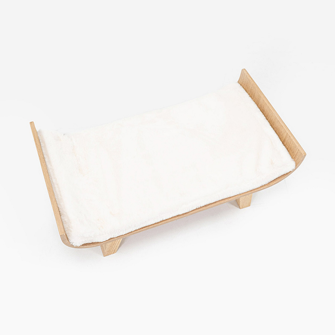 Fijne slaapplek voor je kat, gemaakt van eucalyptushout met een kussen van superzachte pluche. Afm. 65 x 35 x 20 cm.