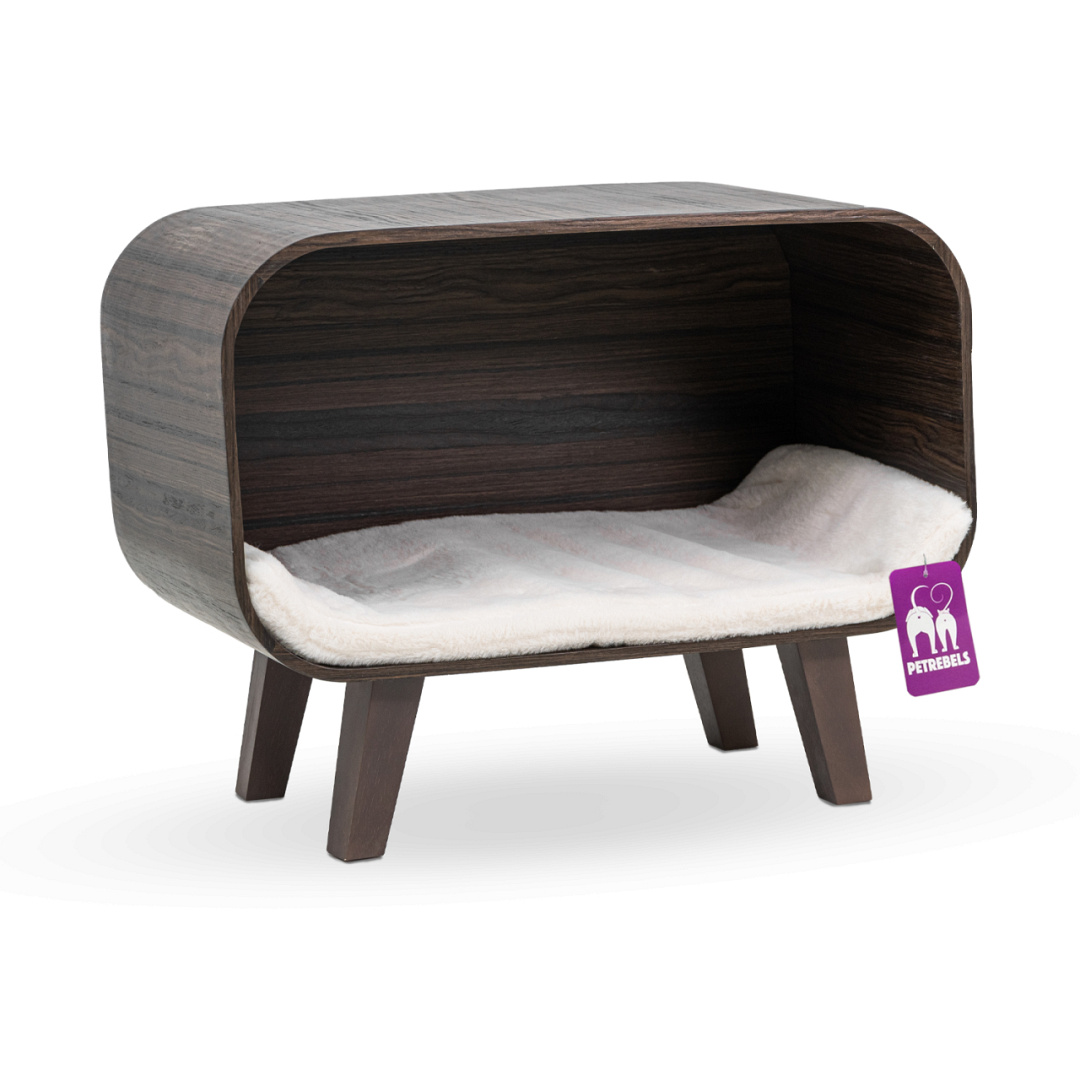Fijne slaapplek voor je kat, gemaakt van eucalyptushout met een kussen van superzachte pluche. Afm. 65 x 35 x 45 cm.