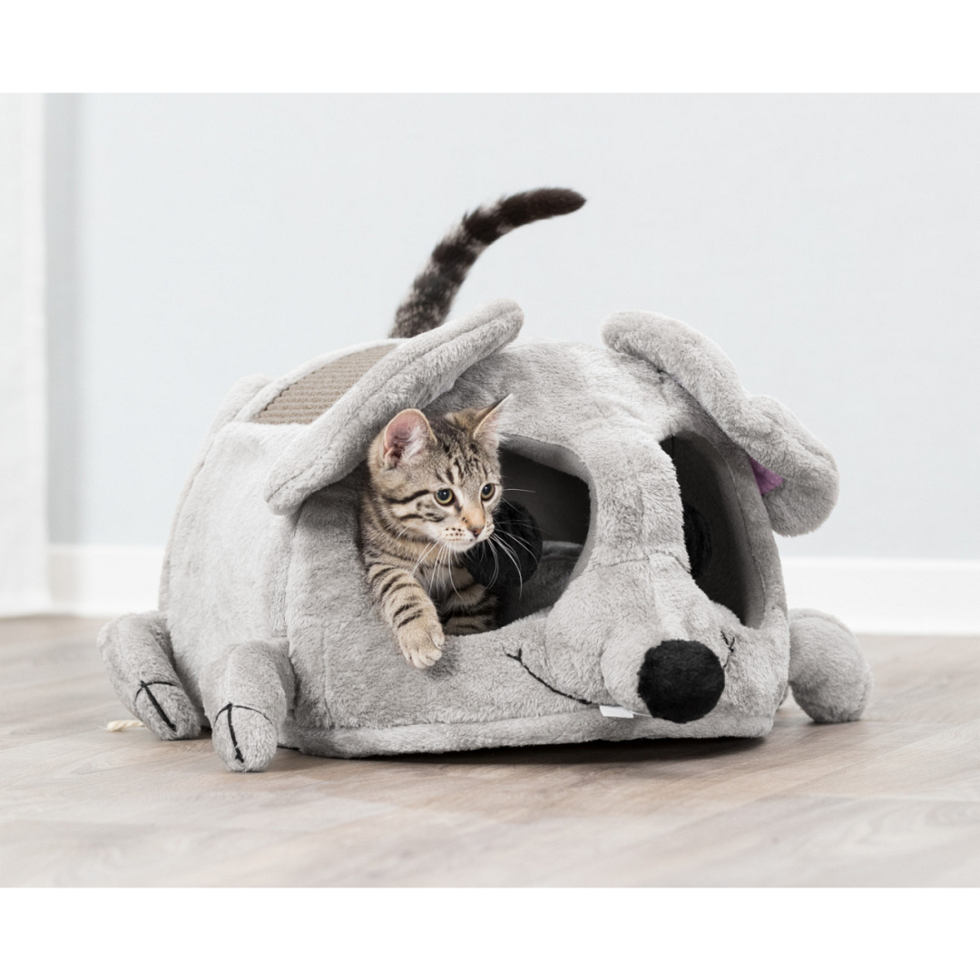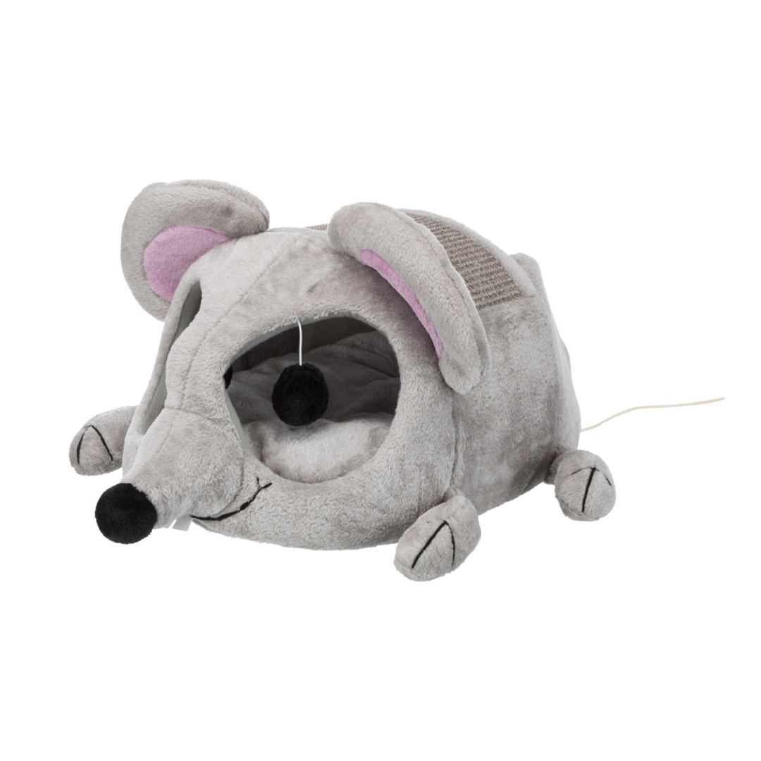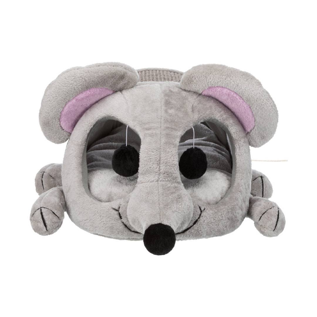 Heerlijk zachte kittenschuil- en speelplaats in de vorm van een muis. Met sisal krabvlak, speelballen en uitdagend ritselfolie in de oren.