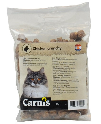 Carnis Kip Crunchy is een krokante snack gemaakt van 100% kippenvlees. Een smakelijk tussendoortje voor je kat.