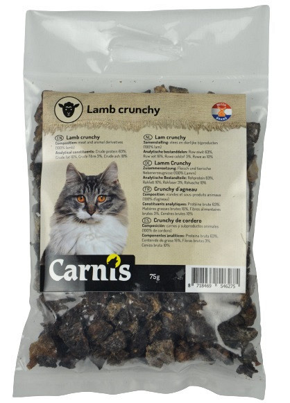Carnis Lam Crunchy is een krokante snack gemaakt van 100% lamsvlees. Een smakelijk tussendoortje voor je kat.