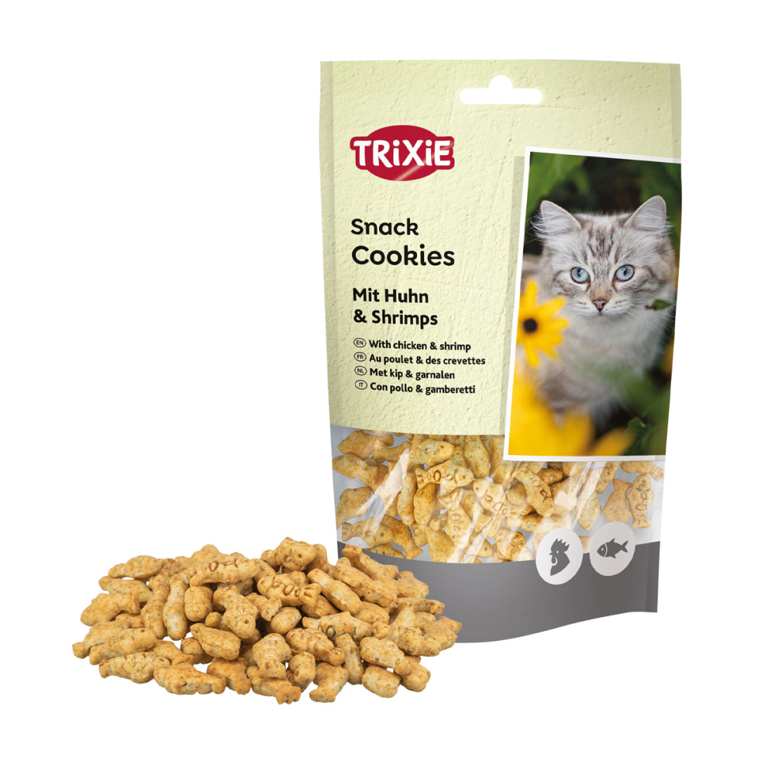 Trixie Cookies Kip & Garnalen is een kleine kattensnack met kip- en garnalensmaak. Een heerlijk tussendoortje waar elke kat blij van wordt.