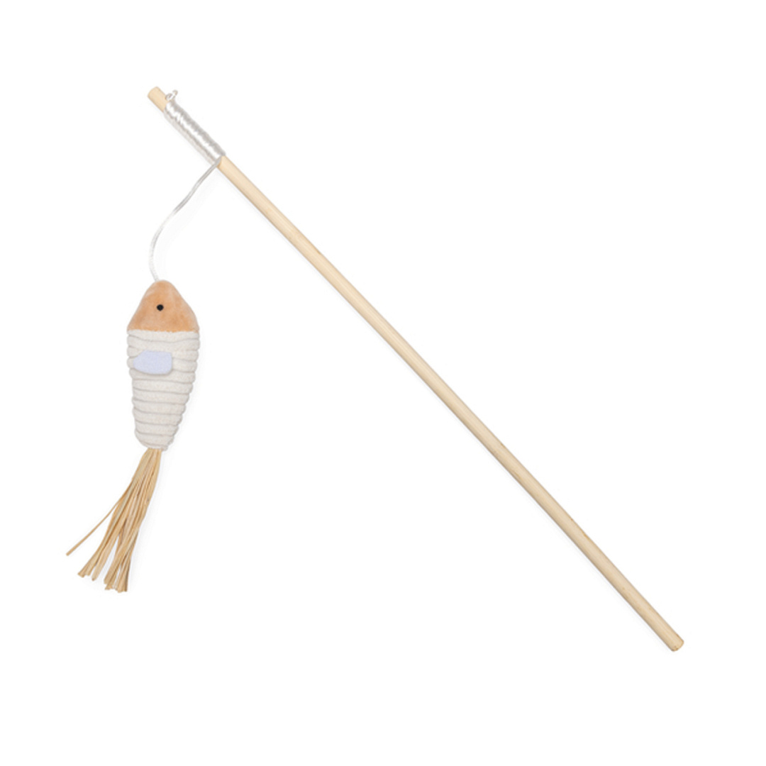 Geef je kat eindeloos speelplezier met de Beeztees kattenhengel vis Fyn! Deze hengel is gemaakt van hout en het kattenspeeltje van 100% gerecycled fleece materiaal. Dat draagt niet alleen bij aan het milieu, maar is ook geweldig voor je kat. Aan de hengel hangt een visje, perfect om je kat uit te dagen en te laten springen, slaan, en achteraan te rennen. Bovendien is dit kattenspeeltje voorzien van franjes, wat zorgt voor extra speelplezier voor jouw kat! Dit kattenspeeltje biedt een leuke en interactieve manier om samen met je kat te spelen, wat de band tussen jullie versterkt en helpt om verveling tegen te gaan.