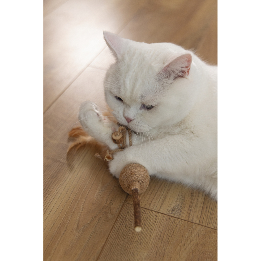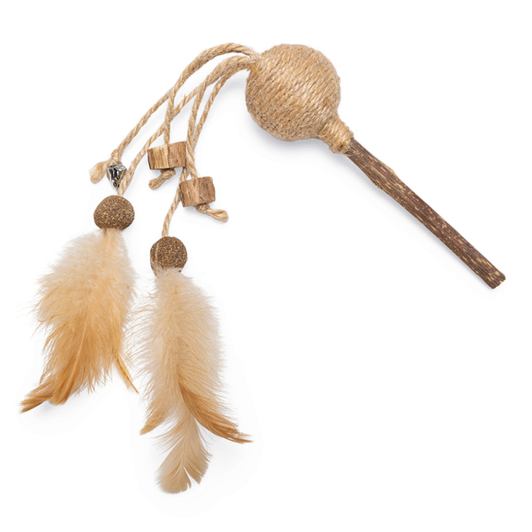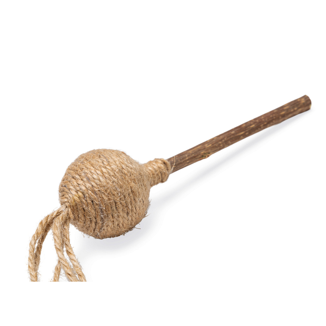Uitdagend kattenspeeltje met juten balletje, ratelgeluid, matatabi en catnip voor extra speelplezier.