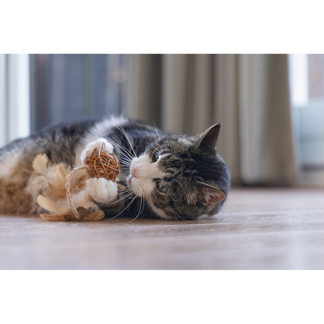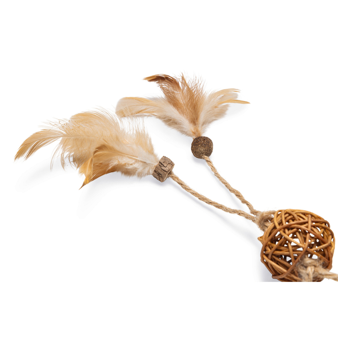 Kattenspeeltje met juten touw, veertjes en matatabi voor extra speelplezier.