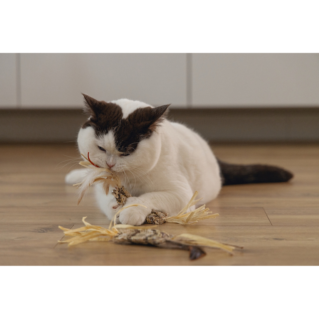 Uitdagend kattenspeeltje met raffia en catnip voor extra speelplezier.