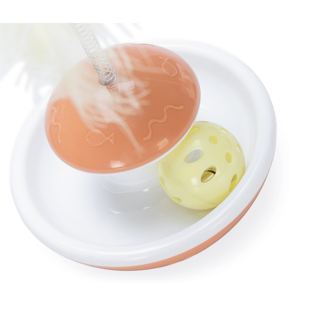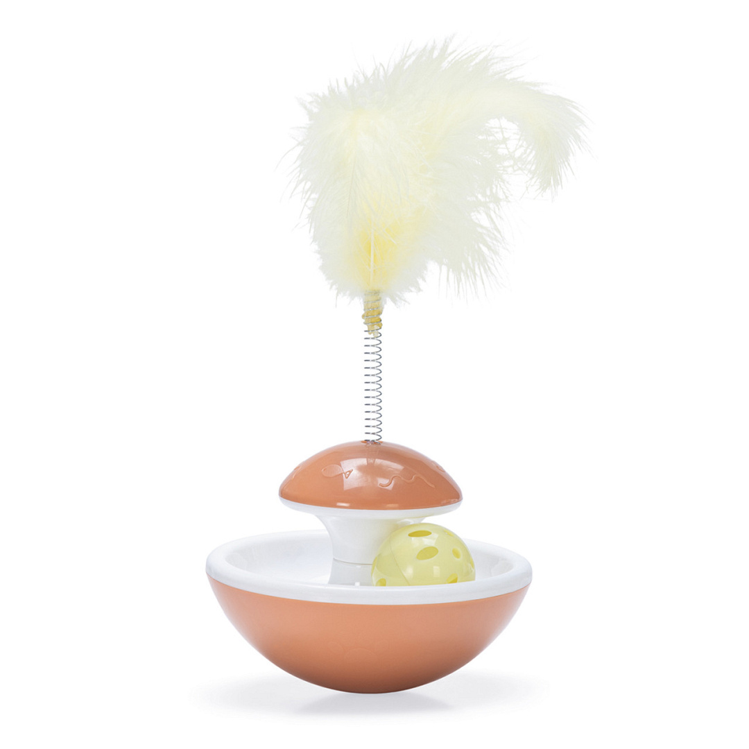 Tuimelend kittenspeeltje met spiraal met veertjes. Activeert het jachtinstinct.