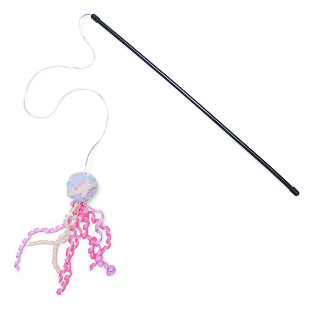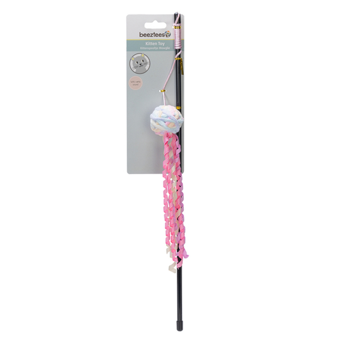 Leuke kattenhengel met bolletje wol en sliertjes, om samen met jouw kitten te spelen.