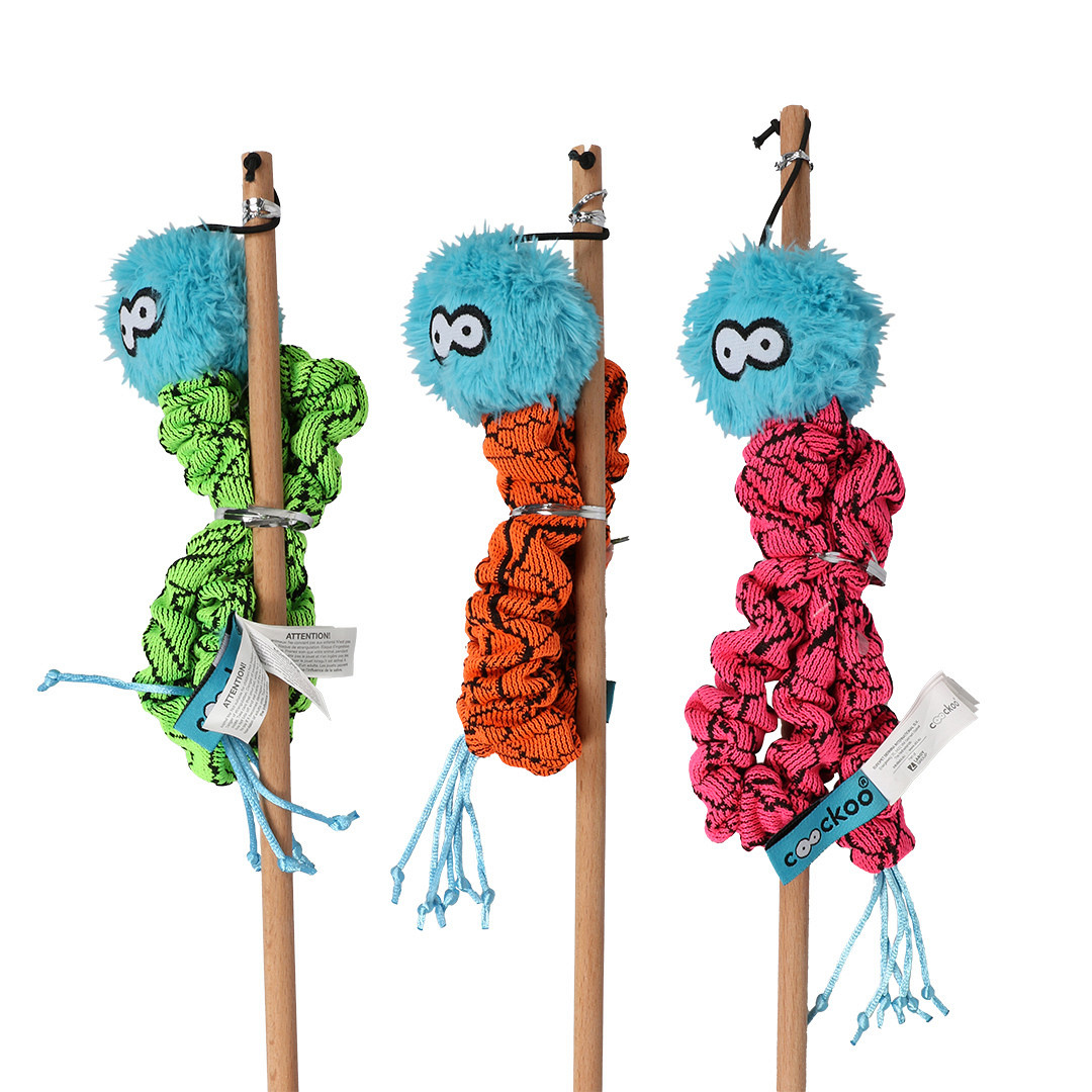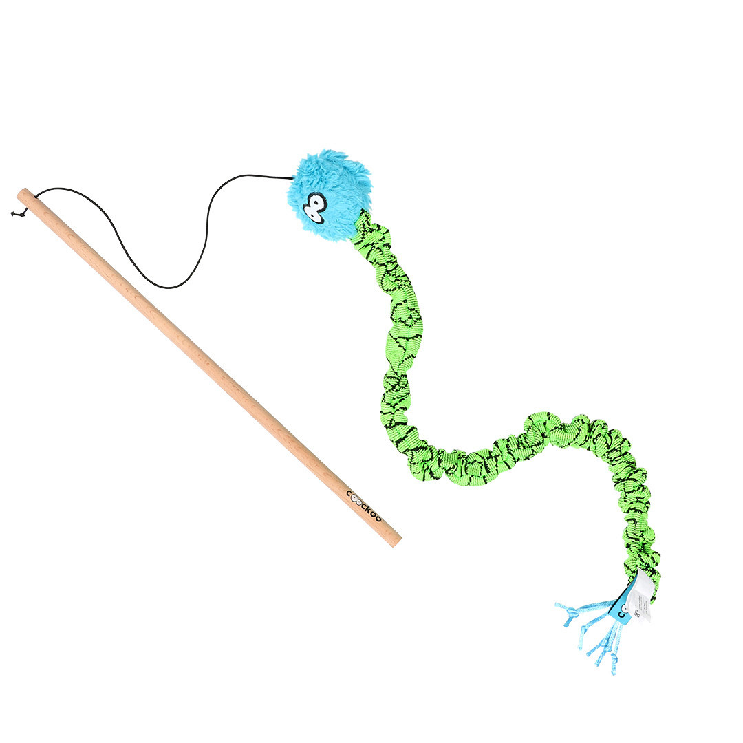 Coockoo kattenhengel Mac is een kattenhengel met een slangenspeeltje van 40 cm lang. De kop is gemaakt van blauwe pluchen stof en het lijfje is gemaakt van sneakerstof. De elastische binnenkant zorgt ervoor dat het speeltje meeveert wanneer je kat het speeltje probeert te pakken. Hierdoor zal het speeltje minder snel kapot gaan aan de sterke nagels van de kat.