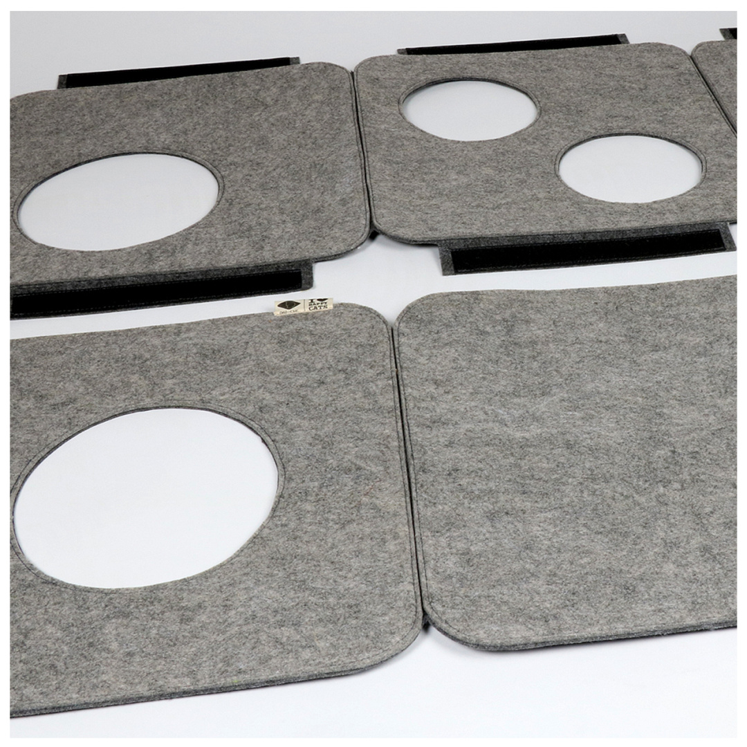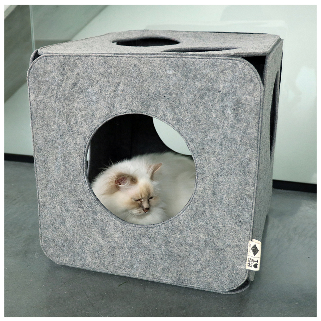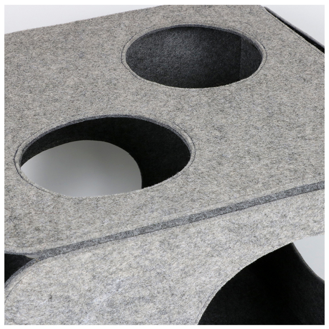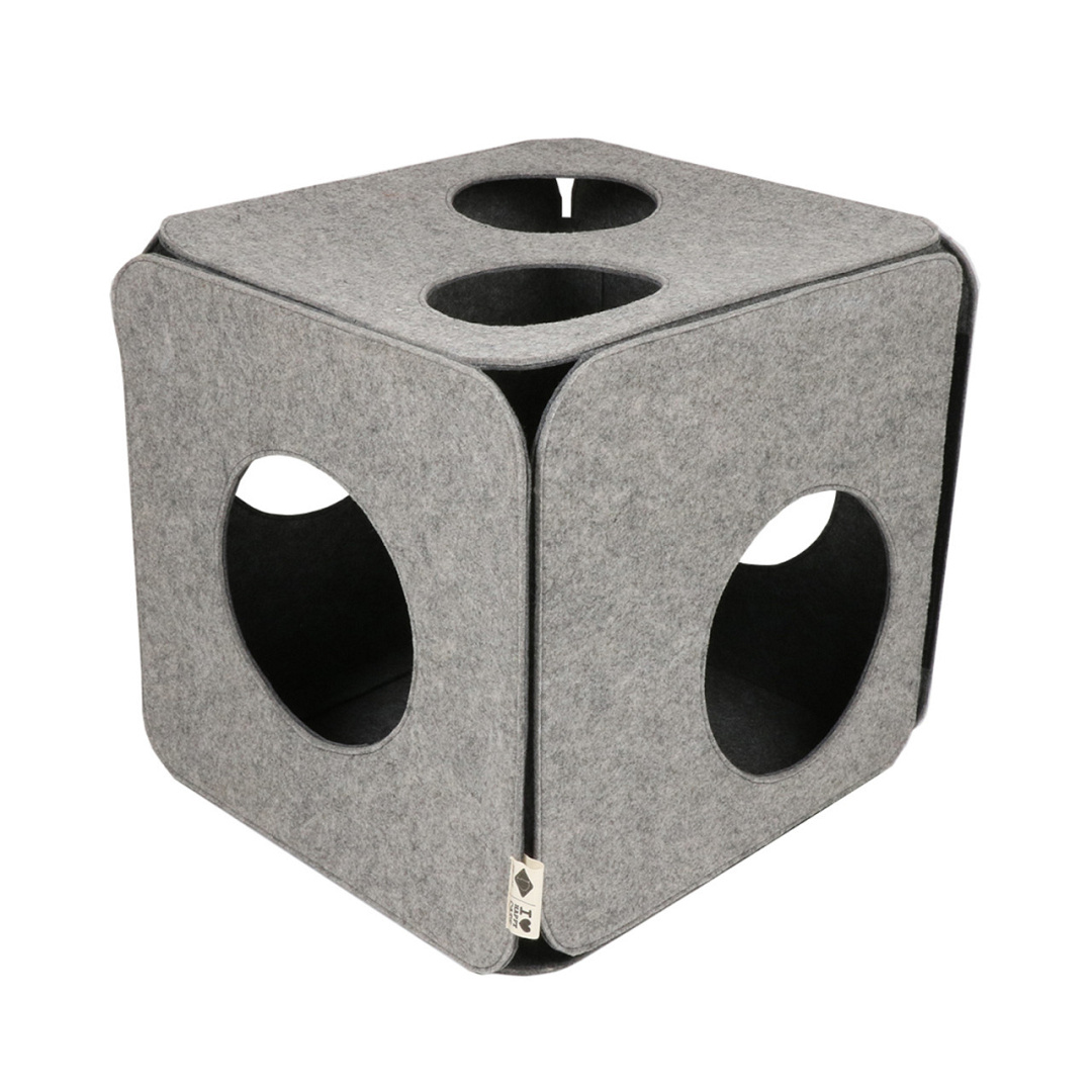 De D&D I Love Happy Cats Speelkubus Nala is een stijlvolle grijze speelkubus die is ontworpen in samenwerking met kattengedragstherapeut Anneleen Bru. Hij vormt een fantastische verstopplaats of een heerlijk speeltje dat makkelijk rolt, want hij is gemaakt van vilt en is daardoor zo licht.