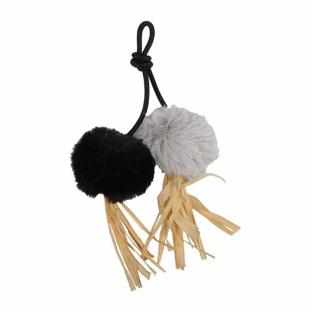 Elastieken hanger met zachte pluchen balletjes en een speelse staart van waterhyacint. Kleur is niet vrij te kiezen.