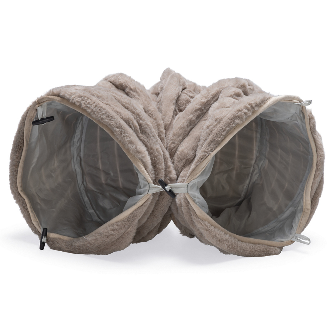 Verras jouw kat met deze stijlvolle Designed by Lotte kattentunnel Reza, bekleed met een prachtige ribstof. De luxe uitstraling maakt deze tunnel niet alleen een feestje voor jouw kat, maar ook een mooie aanvulling op jouw interieur. Katten zijn van nature nieuwsgierig en dol op verstoppen en spelen. Dankzij de ronde vorm en het spannende doorkijkgat halverwege, is deze tunnel perfect voor urenlang speelplezier. Of jouw kat nu lekker wil wegkruipen, onverwachts tevoorschijn wil springen of even helemaal tot rust wil komen, deze tunnel biedt het allemaal. De stevige zachte stof maakt het spel nog aantrekkelijker en zorgt ervoor dat jouw kat er steeds weer naar terugkeert. Is de tunnel even niet in gebruik? Dan vouw je hem eenvoudig op om ruimte te besparen.