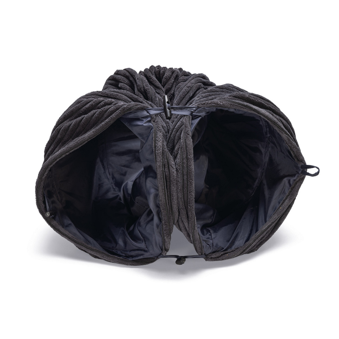 De tunnel beschikt over een opening aan de voor- en achterzijde en in het midden. Door de metalen ringen die in de tunnel verwerkt zijn, blijft de tunnel open staan. Kattentunnel Ribbed is van de buitenzijde voorzien van een mooie trendy ribbed stof, hierdoor past deze perfect bij de laatste woontrends en bovendien is het een mooi accessoire in jouw interieur.