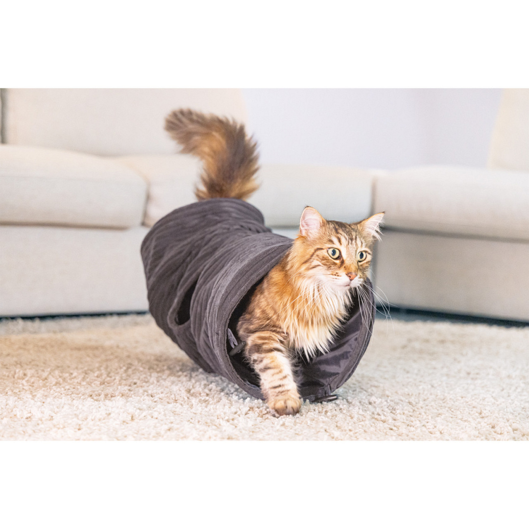 Leuke speeltunnel van mooie ribbelstof. Een heerlijke speel- en verstopplek voor jouw kat.
