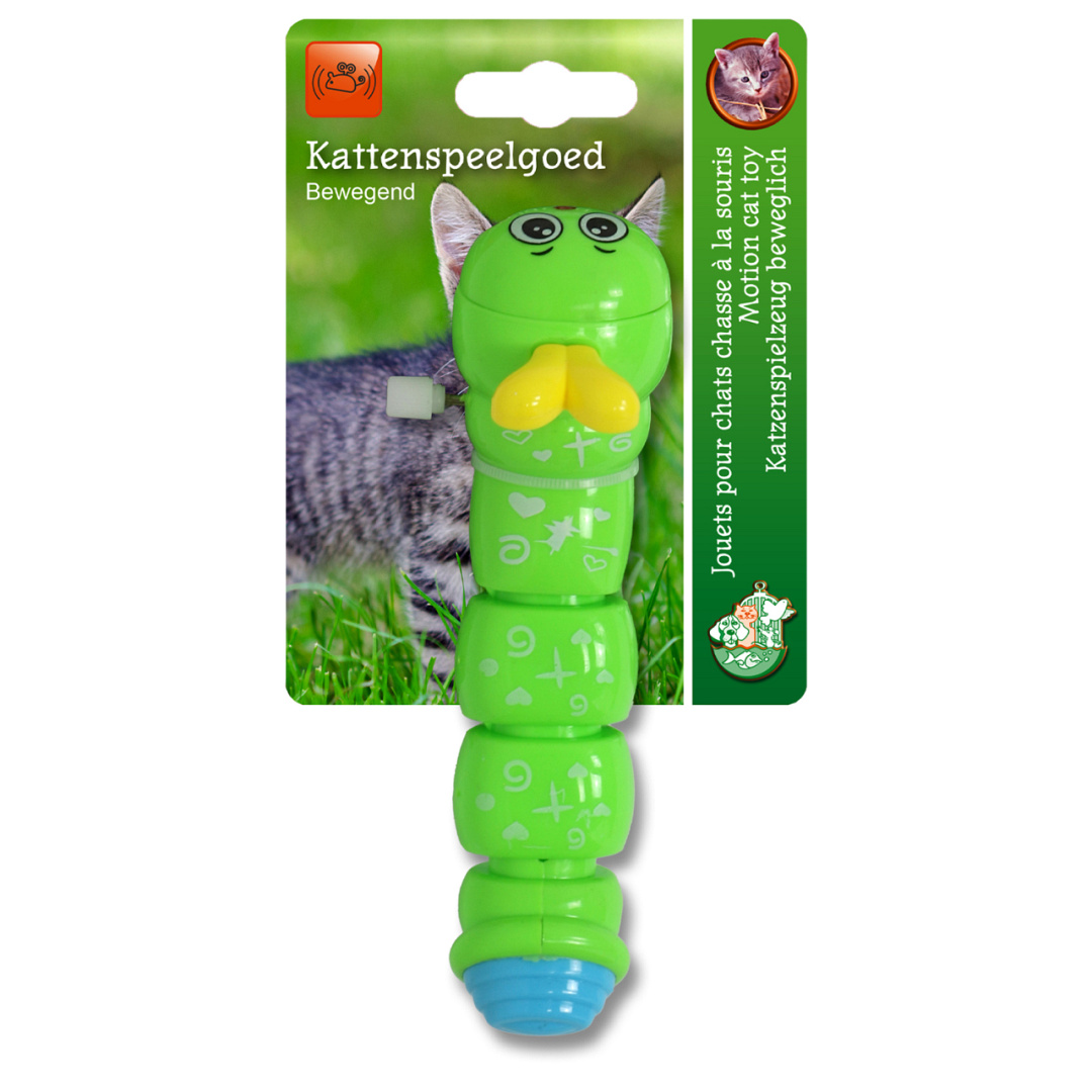 Zelfbewegende rups die rond kruipt en zo het jachtinstict van je kat prikkelt.