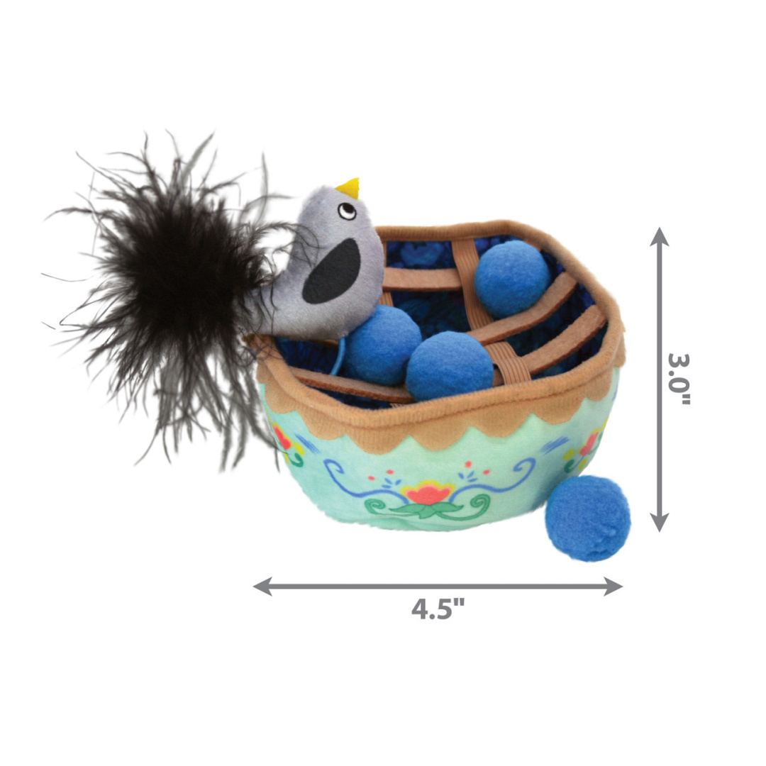 KONG Puzzlements Pie biedt een feest van beloningen voor katten die graag graven en jagen. De gevederde staart van de vastgebonden vogel zit boordevol KONG Premium Noord-Amerikaans kattenkruid en stimuleert het jachtinstinct. Vier blauwe balletjes stimuleren jouw kat om te jagen en zijn jachtrinstinct wordt hierdoor extra gestimuleerd. De staart is voorzien van kraakgeluiden, waardoor het spelen continu interessant blijft.