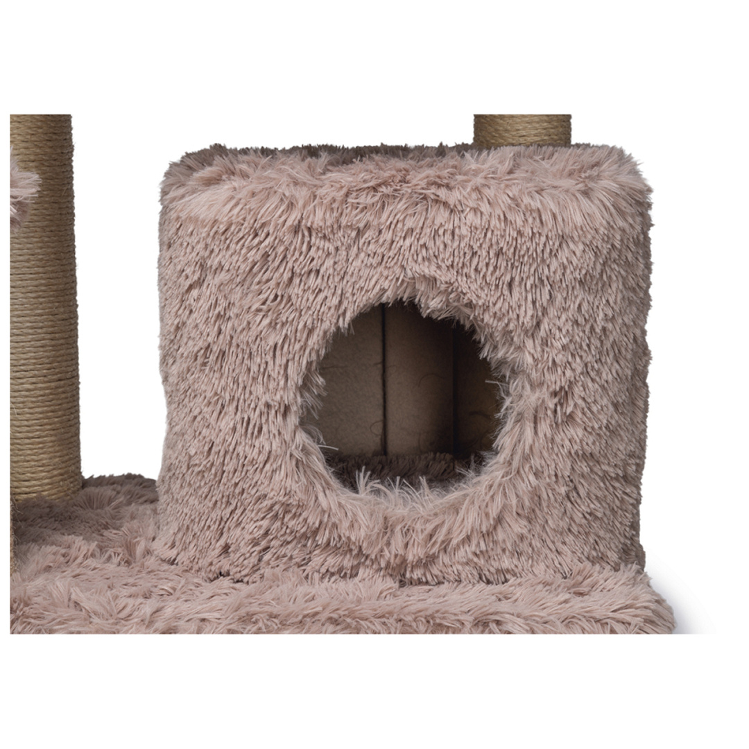 Geef je kat een eigen plek om te spelen, klimmen en krabben met het Beeztees krabmeubel Duco. Deze krabpaal is voorzien van meerdere sisalpalen en is verder afgewerkt met langharig pluche. Het sisal touw om de palen is perfect voor katten om hun nagels te scherpen, wat hun natuurlijke krabinstinct bevredigt en voorkomt dat ze jouw meubels beschadigen. Jouw kat kan met deze krabpaal tot grote hoogte klimmen, doordat de krabpaal bestaat uit verschillende plateaus. De krabpaal bevat twee ligplekken, waarop jouw kat lekker kan uitrusten. Ook is er een echte slaapplek gemaakt, waar jouw kat beschut en ongestoord een dutje kan doen. Bovendien bevat deze paal ook een flostouw, wat voor zorgt voor extra speelplezier.