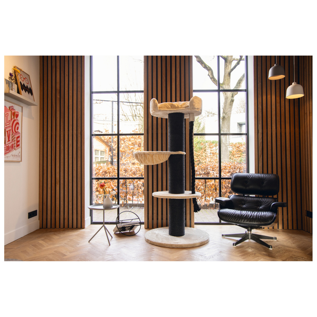 Robuust krabmeubel met extra dikke sisal stam en meerdere slaapplekken. Geschikt voor grote, sterke katten.