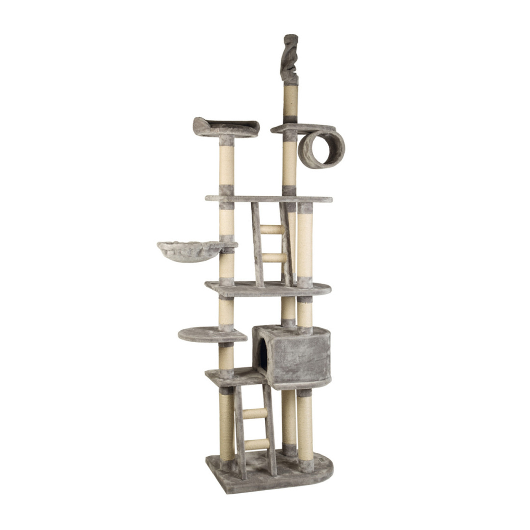 Het Beeztees krabmeubel Magnefiq is een echt speelparadijs voor jouw kat! Dit krabmeubel heeft een magische aantrekkingskracht voor jouw kleine vriend. Deze krabpaal bestaat namelijk uit ontelbaar veel palen, ladders en heerlijke slaapplekken, waar jouw kat de hele dag zoet mee is. Bovendien is de krabpaal zo hoog, dat jouw kat lekker naar boven kan klauteren en alles in de gaten kan houden vanaf het bovenste plateau. Doordat de krabpaal vast kan worden gezet tegen het plafond, wordt de stabiliteit versterkt. Flinke jongen die hem om kan duwen.