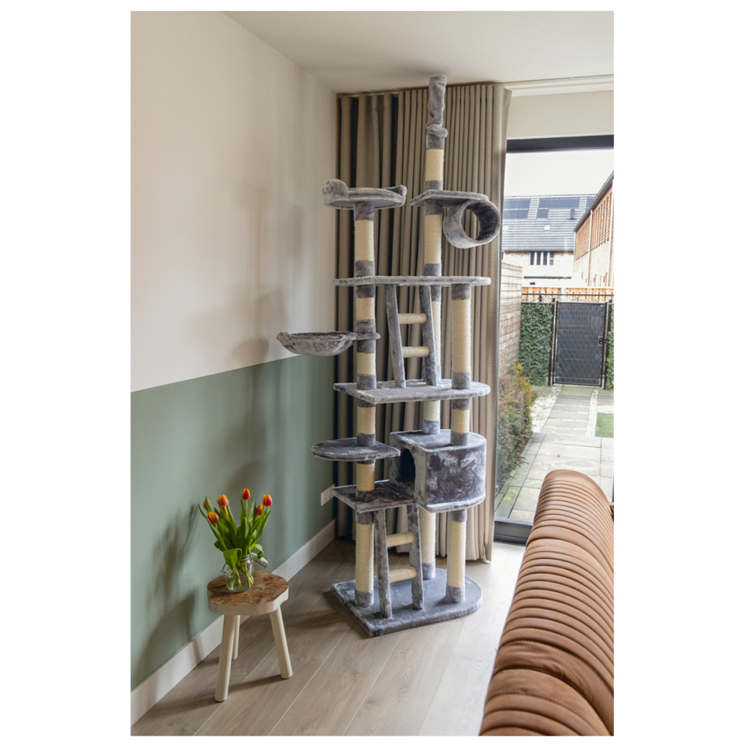Plafondhoge krabpaal met heel veel palen, ladders en slaapplekken. Een waar paradijs voor jouw kat.