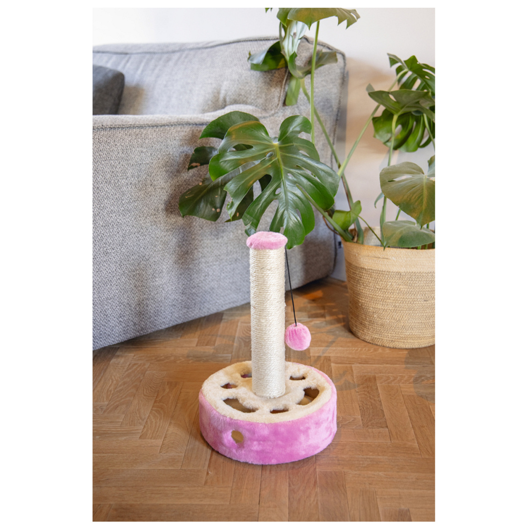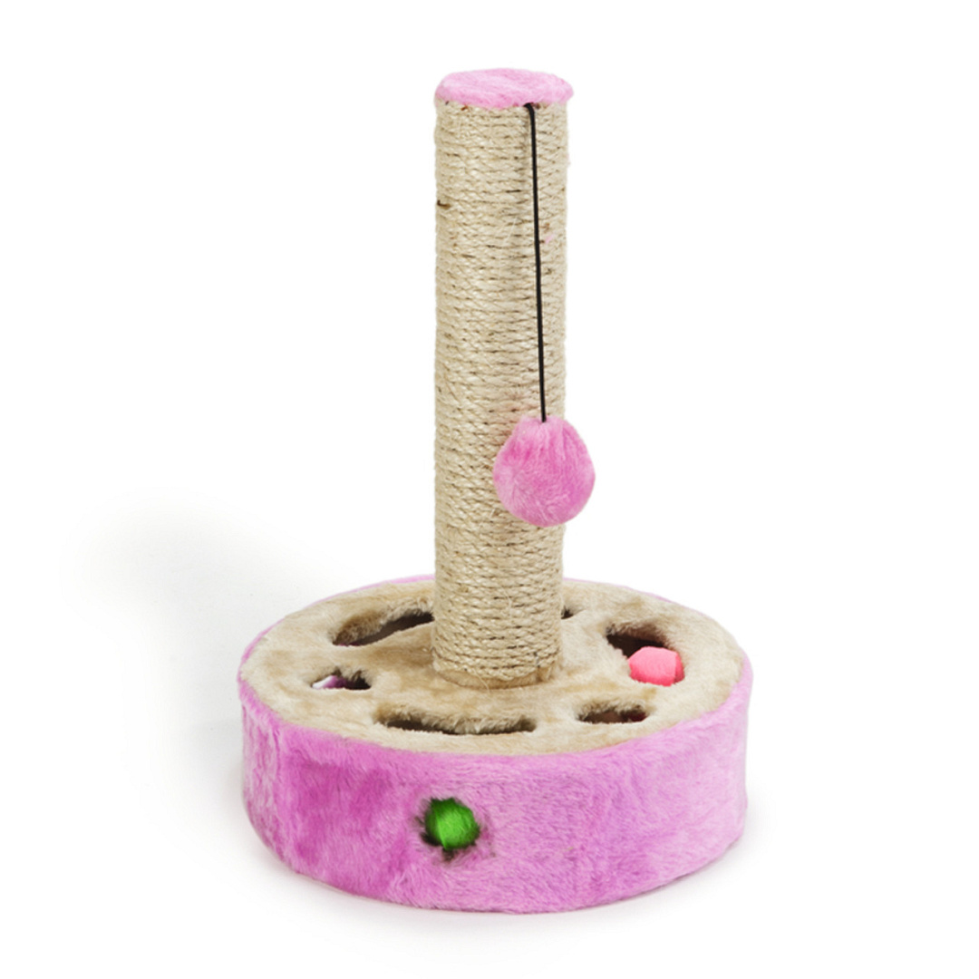 Leuke krabpaal voor speelse katten. Met sisal krabstam en een voet waarin pluchen balletjes verstopt zitten.