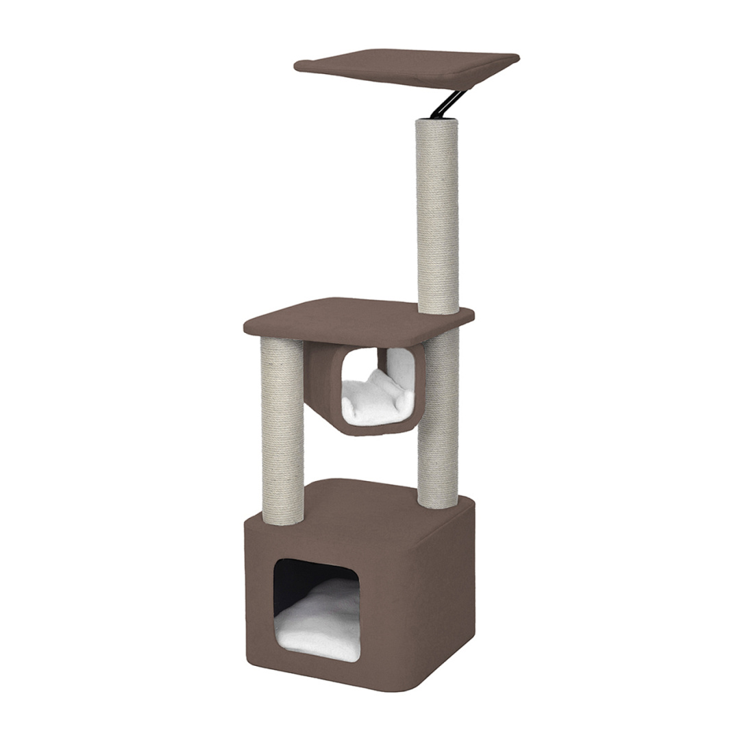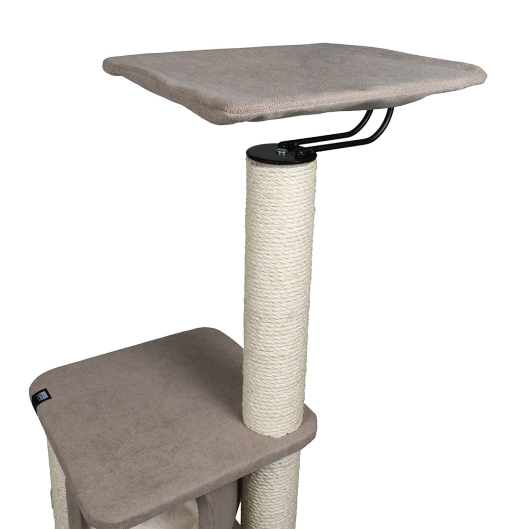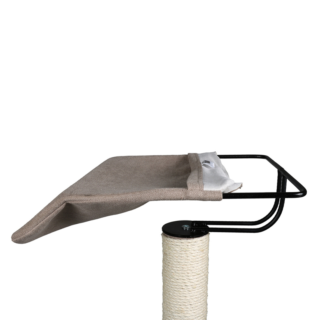 Minimalistische krabpaal in zenstijl met meerdere slaapplekken en comfortabele hangmat bovenop. Afm. 37 x 37 x 121 cm.