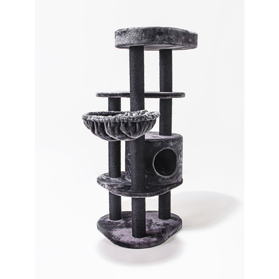 Compact en stabiel krabmeubel met slaapruimte, hangmat en mega divan. Afm. 56 x 59 x 134 cm.