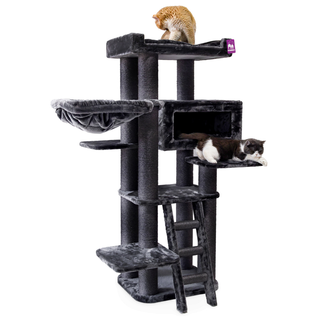 Zeer groot krabmeubel met verschillende extra grote slaapplekken. Geschikt voor actieve, maar ook voor oudere katten. Afm. 80 x 62 x 170 cm.