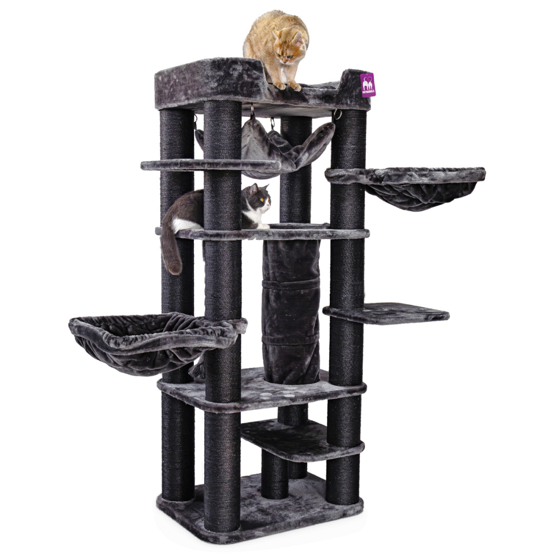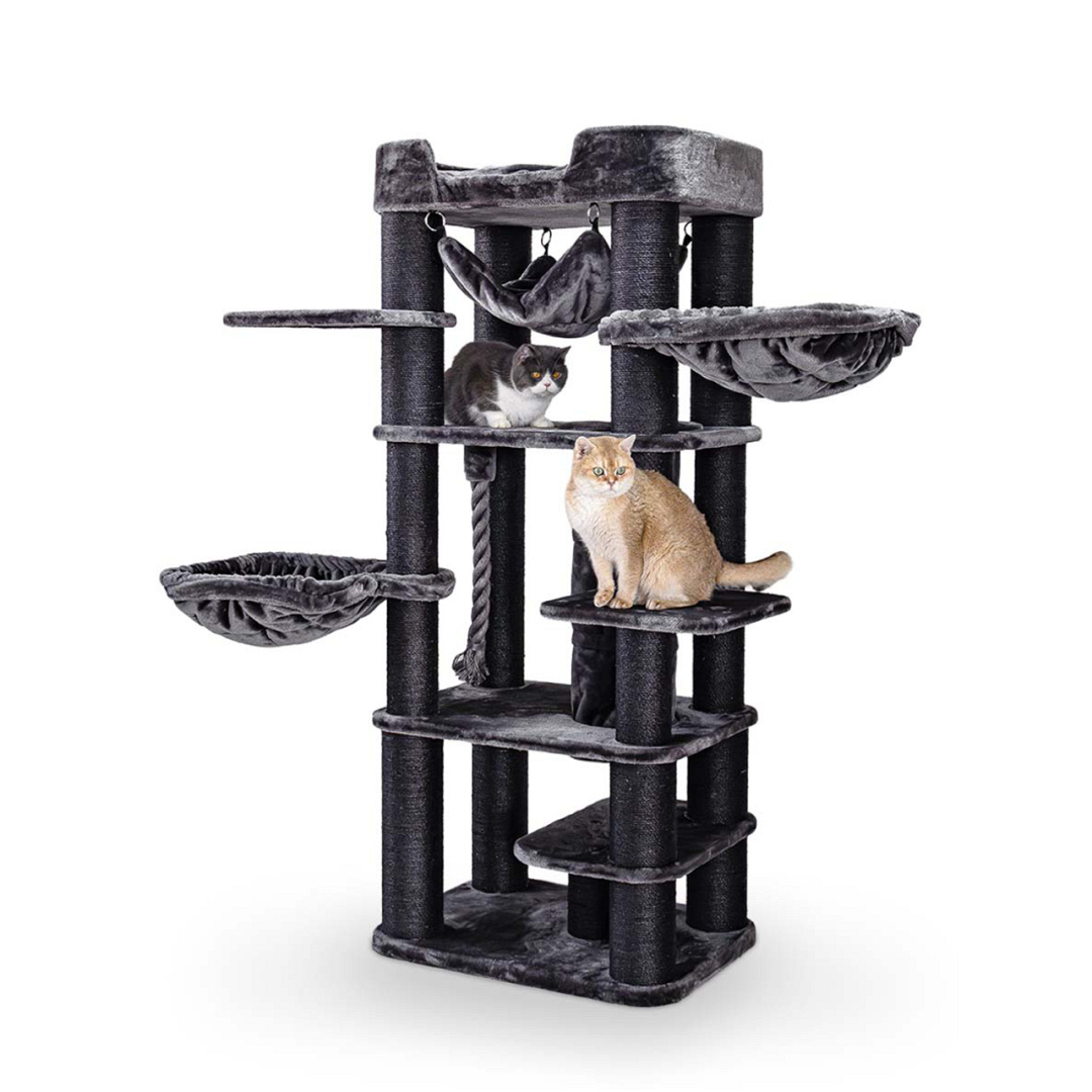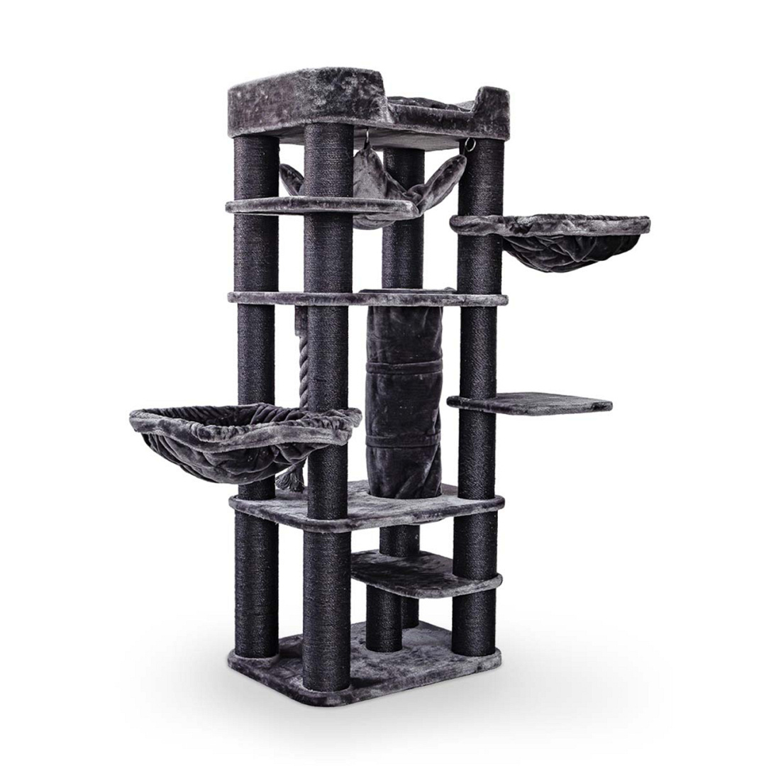 Extra groot krabmeubel met o.a. 3 hangmatten, een speeltunnel en een heerlijke XXL-loungemand. Afm. 78 x 58 x 185 cm.