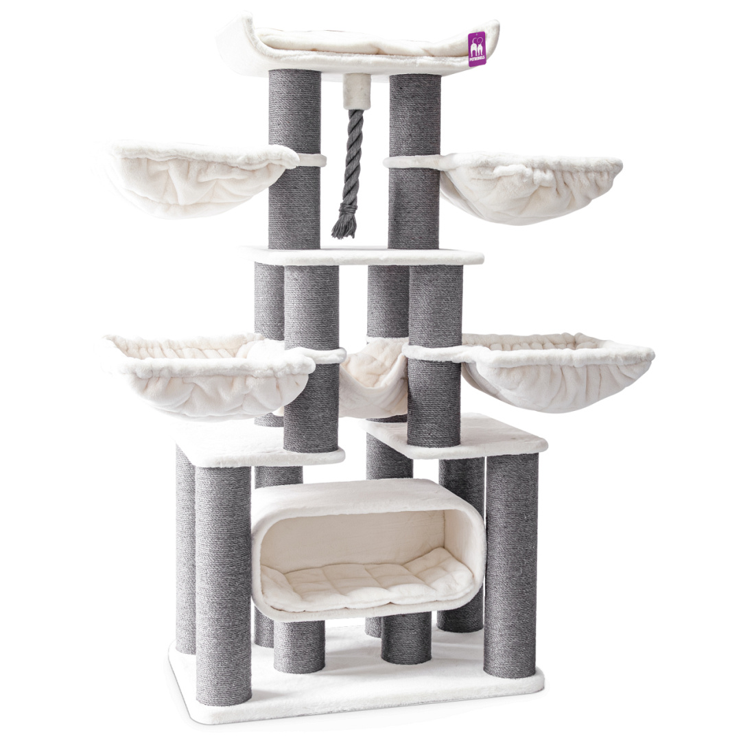 Extra groot krabmeubel met 4 hangmatten, royaal slaaphuis en een XXL-loungemand. Afm. 98 x 58 x 186 cm.