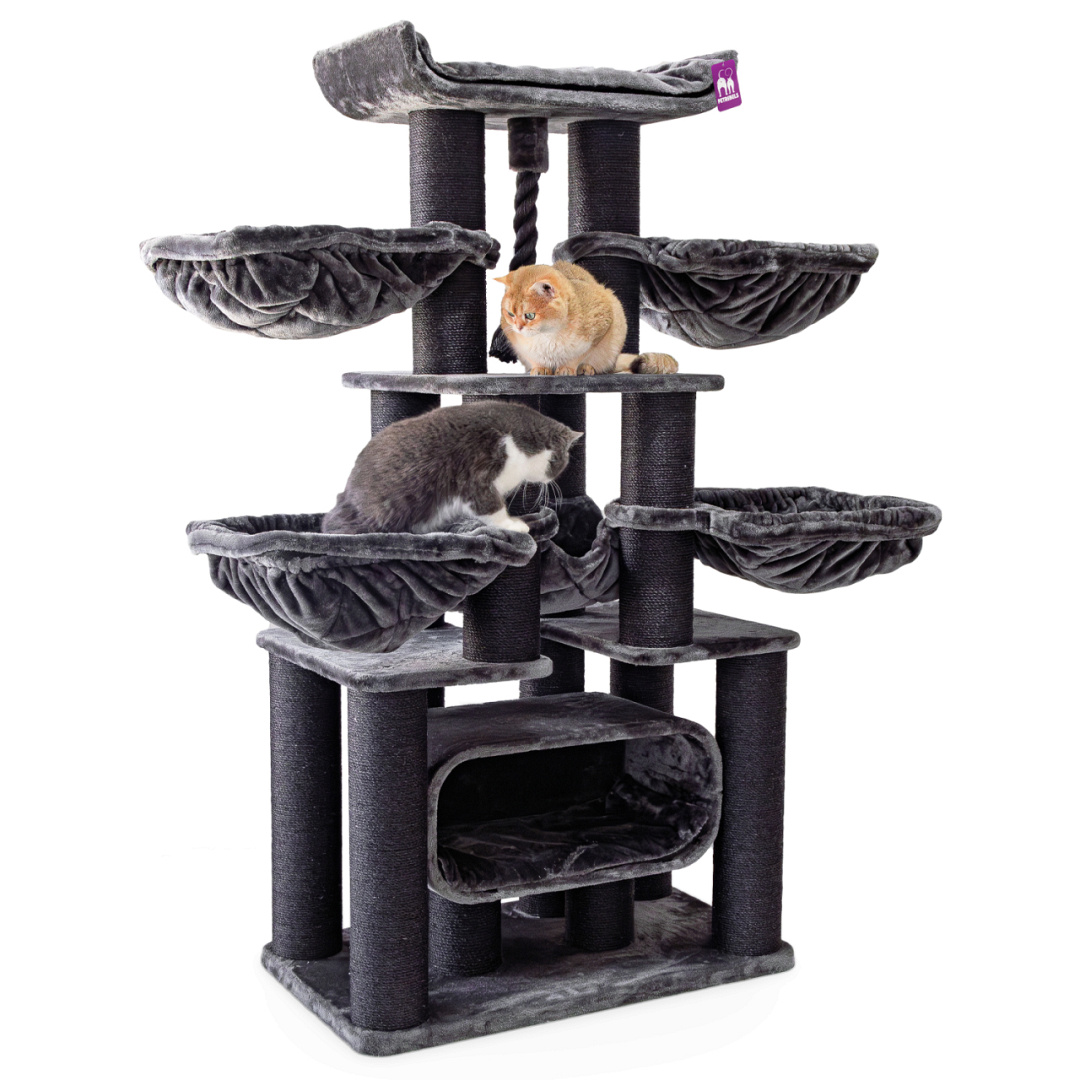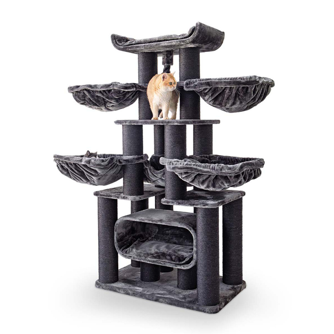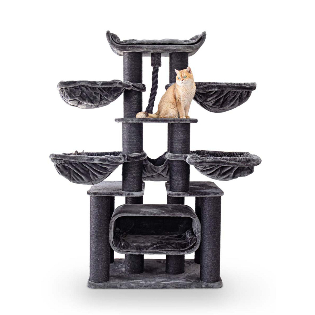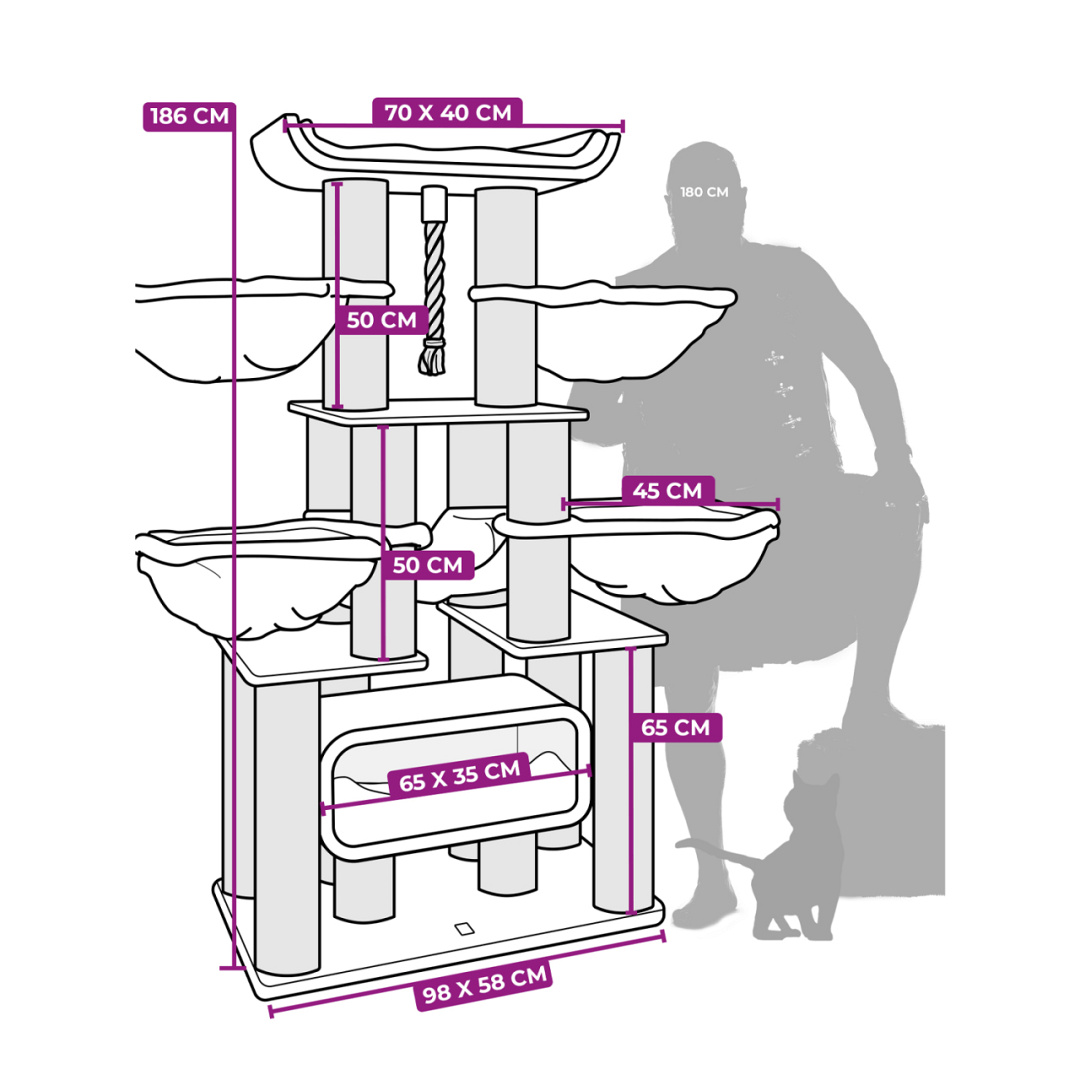 Extra groot krabmeubel met 4 hangmatten, royaal slaaphuis en een XXL-loungemand. Afm. 98 x 58 x 186 cm.