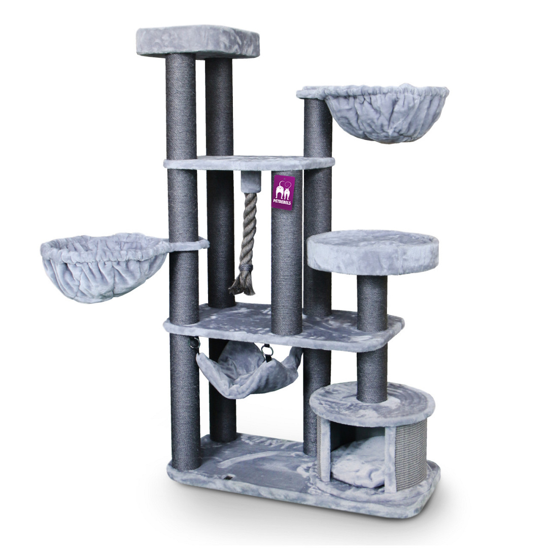 Het Petrebels krabmeubel Lucky Bastards Vista 170 is een totaalkrabpaal. Alles wat een kat nodig heeft om zich te vermaken zit in dit model. Of je nu een Maine Coon, een Noorse Boskat of een lapjeskat hebt, ze zullen allemaal staan te trappelen om deze gigant te beklimmen.
