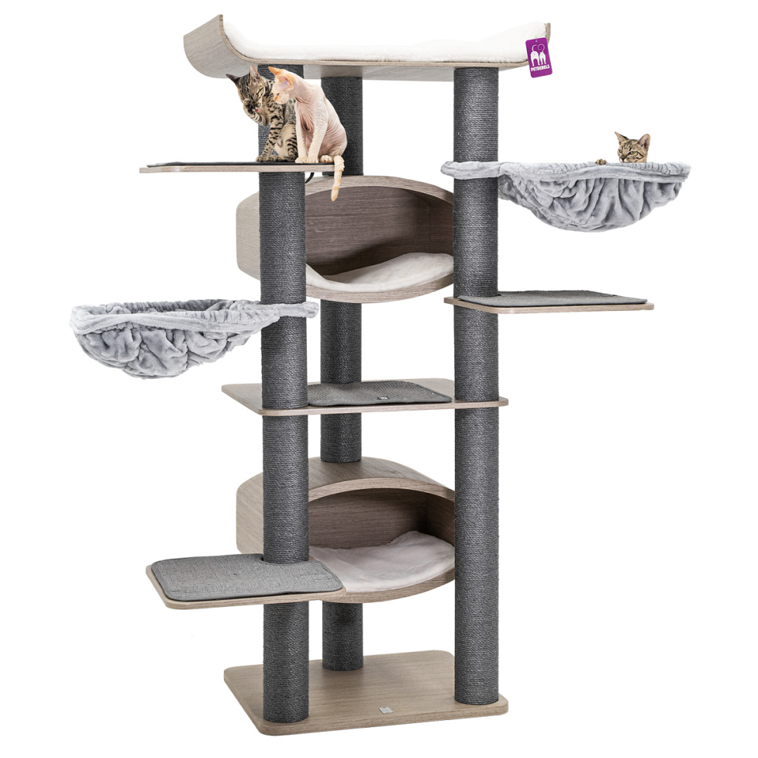 Hoog krabmeubel met meerdere heerlijke lig- en verstopplekken. Afm. 90 x 60 x 187 cm.