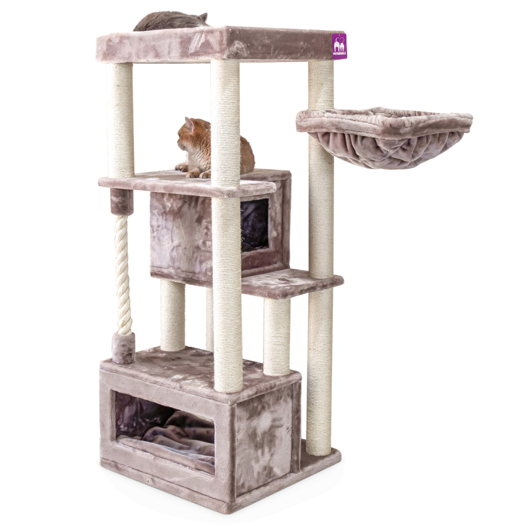 Compacte krabpaal voor elke soort kat; groot, klein, jong en oud. Met extra dikke krabstammen en afgewerkt met luxe pluche. Afm. 58 x 58 x 150 cm.