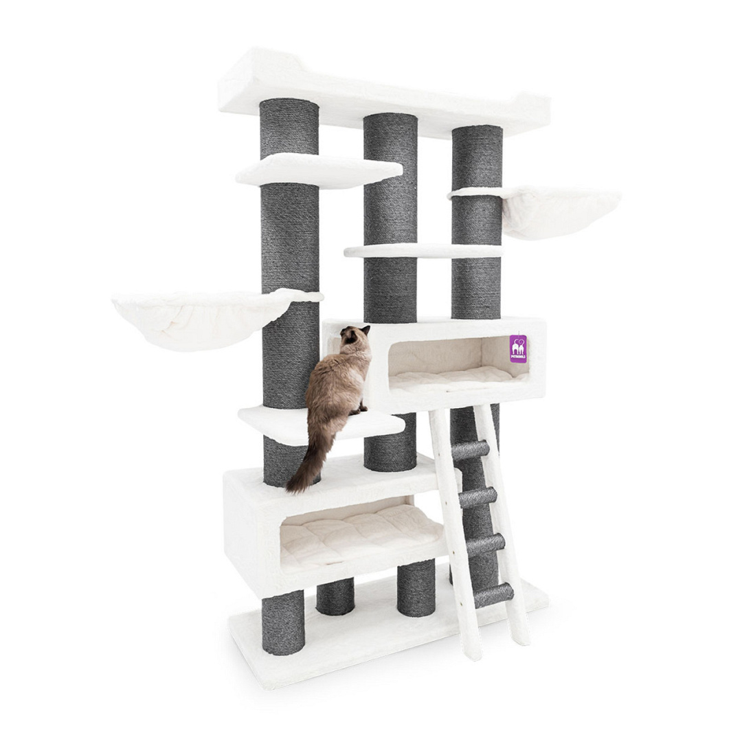 Het Petrebels krabmeubel The Rebels Siberian 200 is stoer, hoog en heel erg stabiel. Deze krabpaal van topkwaliteit staat als een huis. Of beter: als een wolkenkrabber van twee meter hoog! Want elke kat, groot of klein, moet veilig kunnen spelen, klimmen en krabben. En slapen natuurlijk, want van al die leuke dingen word je hartstikke moe. Daarom heeft deze krabtoren een royale kattenmand helemaal bovenin, twee sterke hangmatten en twee ruime slaaphuisjes. Meer dan genoeg plek om uit te puffen van al die spannende avonturen!