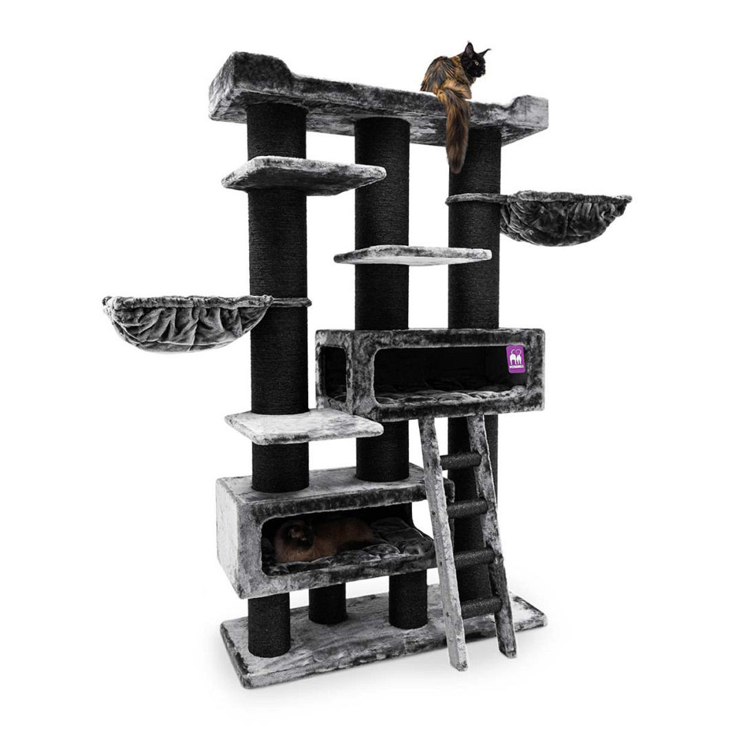 Het Petrebels krabmeubel The Rebels Siberian 200 is stoer, hoog en heel erg stabiel. Deze krabpaal van topkwaliteit staat als een huis. Of beter: als een wolkenkrabber van twee meter hoog! Want elke kat, groot of klein, moet veilig kunnen spelen, klimmen en krabben. En slapen natuurlijk, want van al die leuke dingen word je hartstikke moe. Daarom heeft deze krabtoren een royale kattenmand helemaal bovenin, twee sterke hangmatten en twee ruime slaaphuisjes. Meer dan genoeg plek om uit te puffen van al die spannende avonturen!