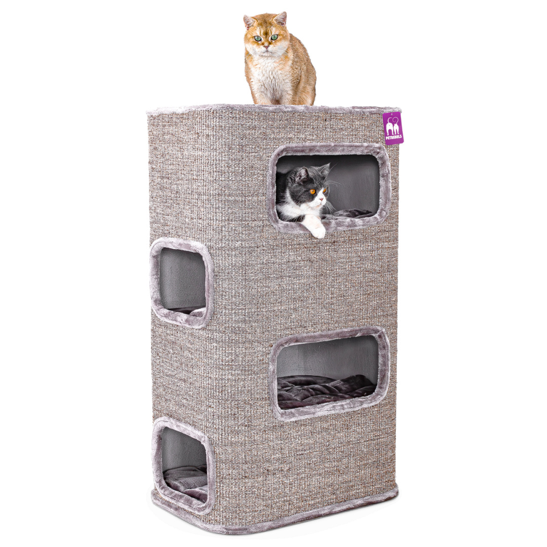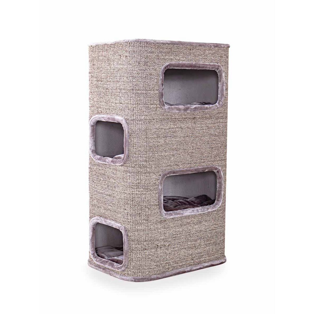 Stevige krabtoren met vijf royale slaapplekken. Rondom bekleed met extra sterk sisal. Afm. 68 x 48 x 118 cm.
