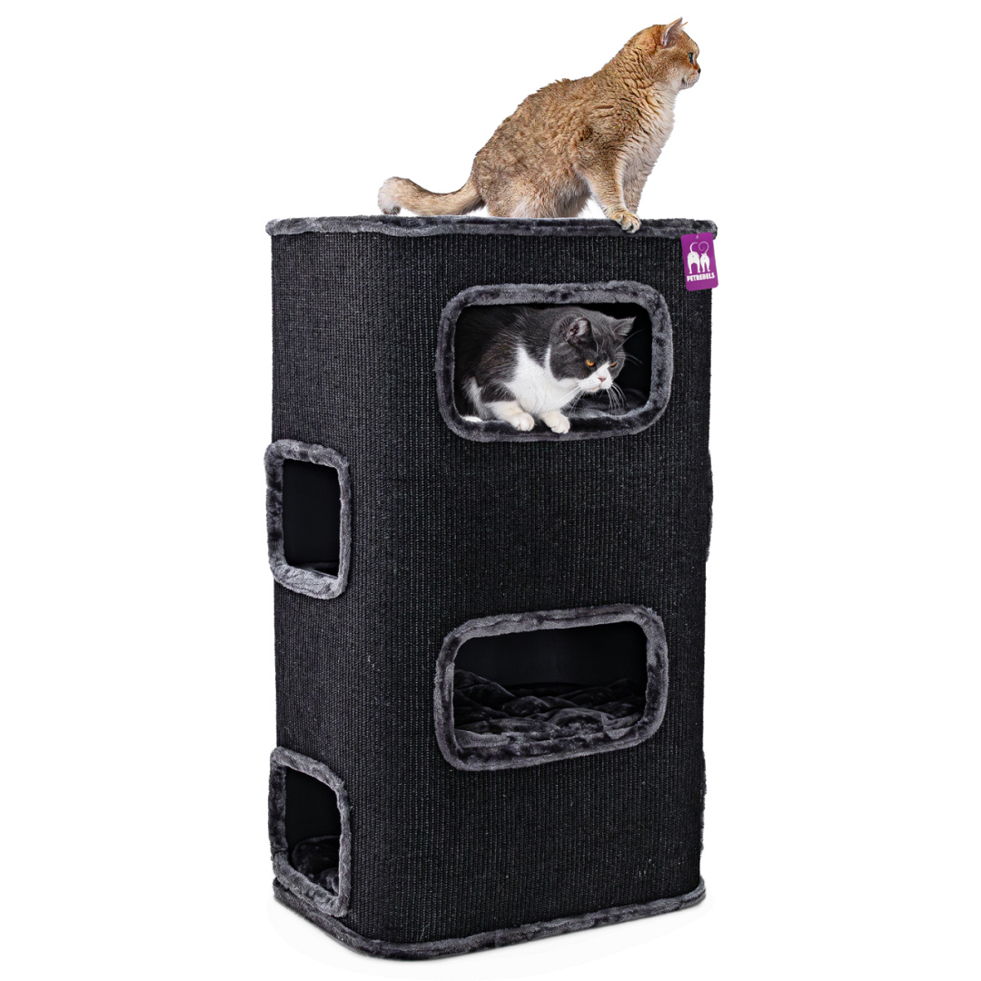 Stevige krabtoren met vijf royale slaapplekken. Rondom bekleed met extra sterk sisal. Afm. 68 x 48 x 118 cm.