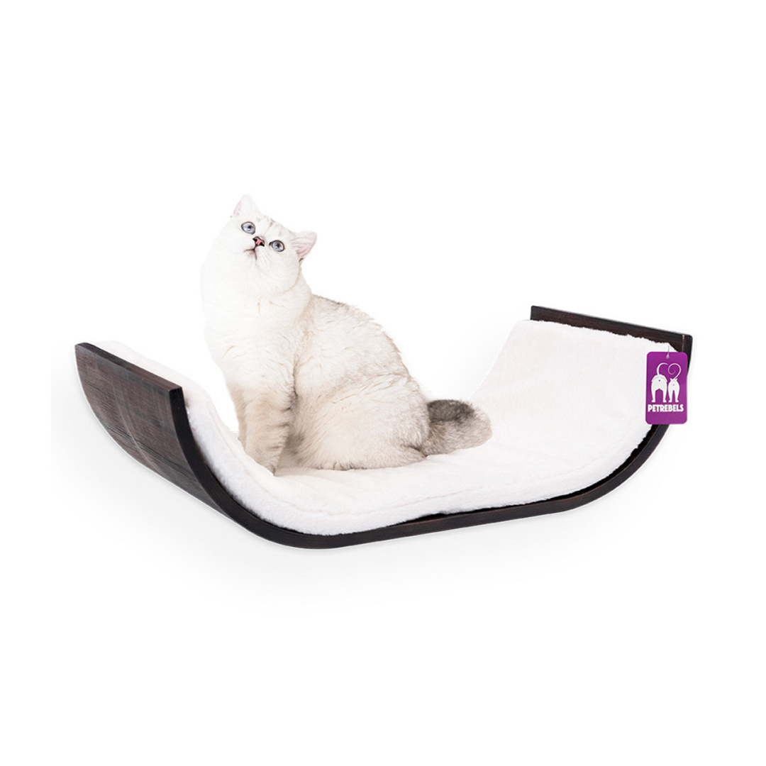 De Petrebels Curve is een smaakvol gebogen muurplank met relaxkussen en onderdeel van de Wall of Rebels collectie: een prachtige lijn producten waar katten in kunnen slapen, spelen, klimmen, overheen kunnen rennen en aan kunnen krabben. En die je eindeloos kunt combineren.