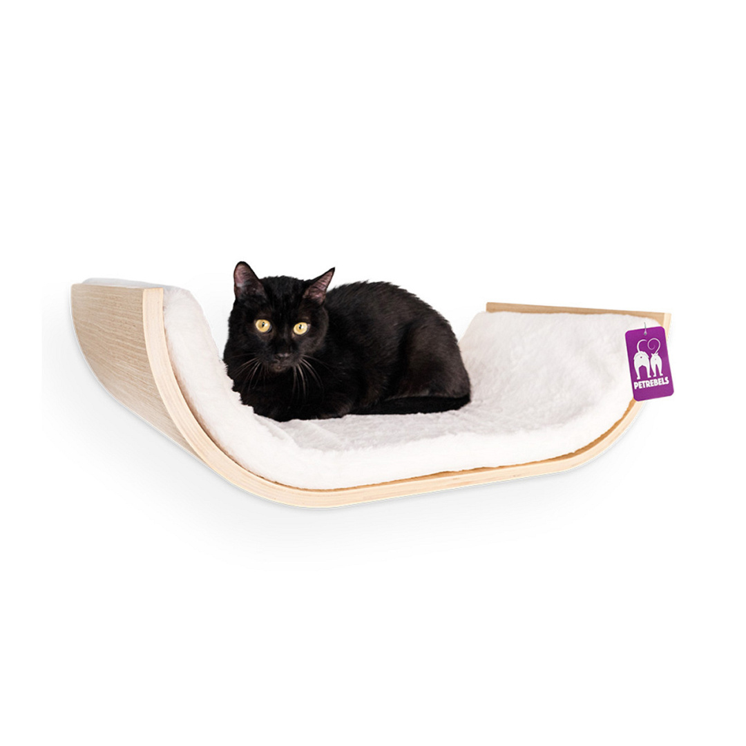De Petrebels Curve is een smaakvol gebogen muurplank met relaxkussen en onderdeel van de Wall of Rebels collectie: een prachtige lijn producten waar katten in kunnen slapen, spelen, klimmen, overheen kunnen rennen en aan kunnen krabben. En die je eindeloos kunt combineren.