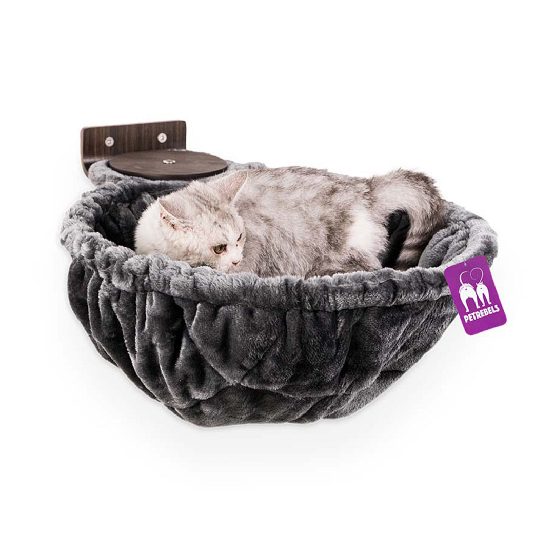 Verwen je kat met de Hang round set, een superzachte hangmat die je aan je muur kunt ophangen. Deze hangmat is onderdeel van de fantastische Wall of Rebels collectie: dat zijn producten waarin katten kunnen slapen, spelen, klimmen, overheen kunnen rennen en aan kunnen krabben. En die kun je allemaal combineren!