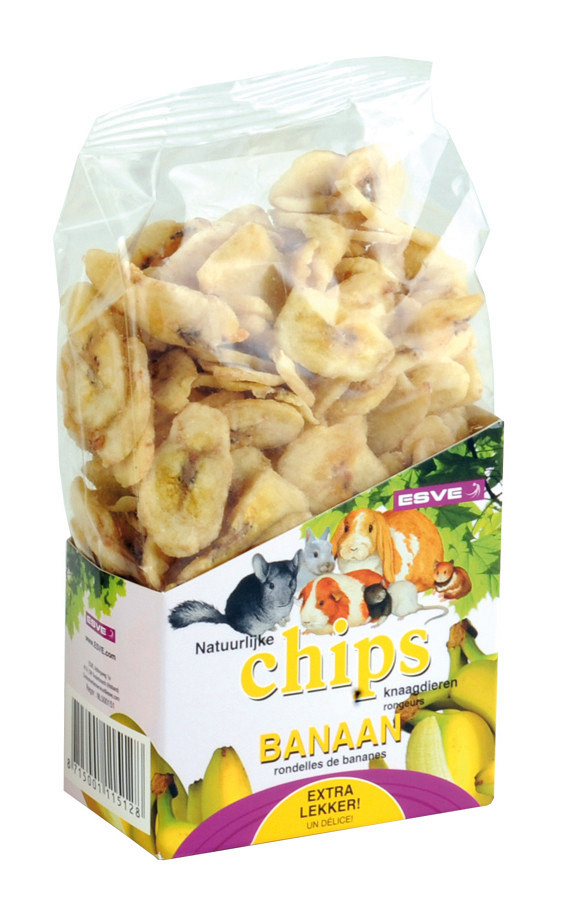 ESVE Bananenchips zijn niet alleen een heerlijke en knapperige lekkernij, ze bevatten ook levensbelangrijke voedingsstoffen. Dankzij de ideale grootte zijn bananenchips ideaal als beloning voor aangeleerd gedrag of als lekkernij voor tussendoor.