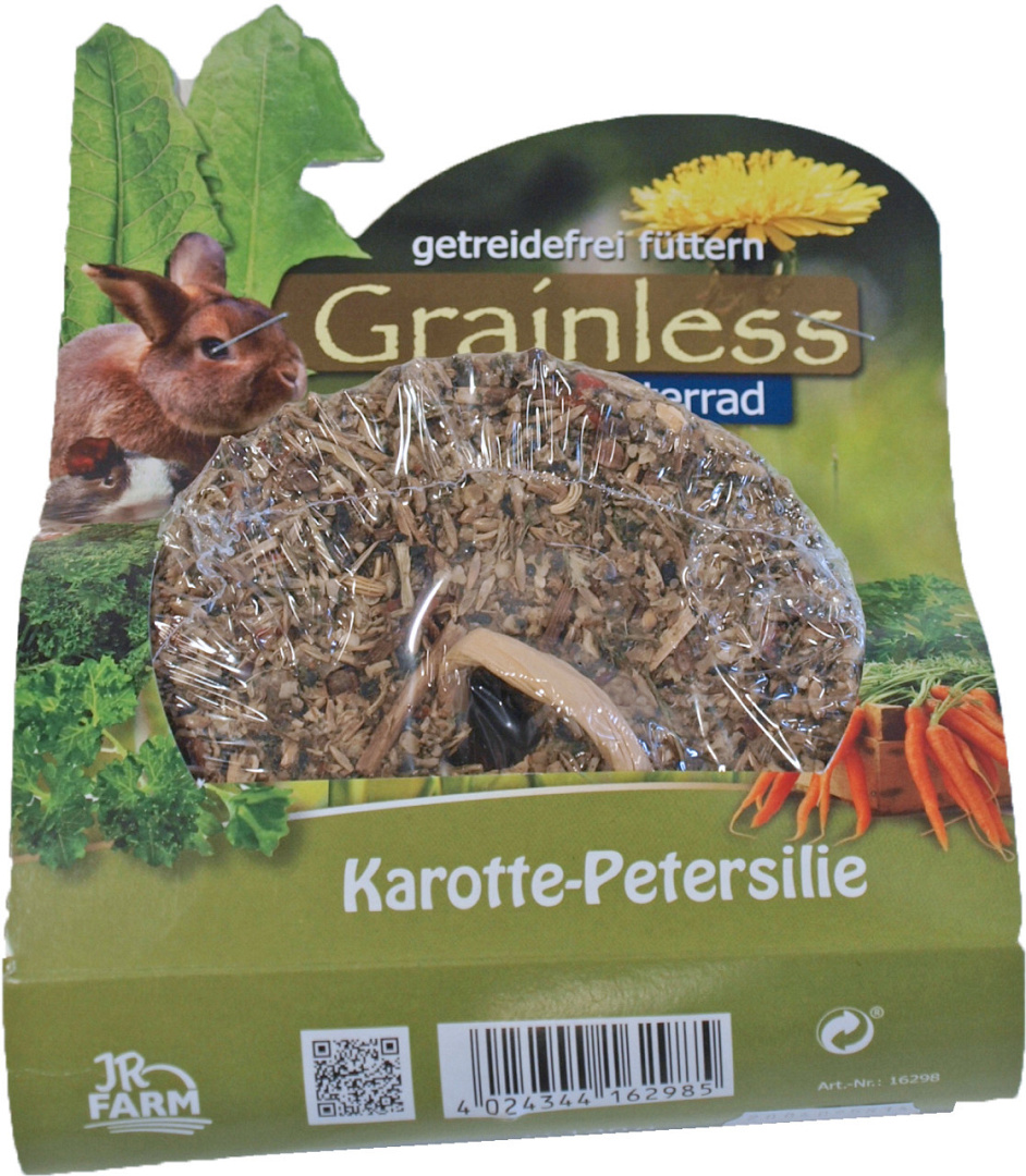 JR Grainless kruidenwiel wortel/peterselie is een leuk en lekker wiel om in een knaagdierverblijf op te hangen. Met tal van gezonde kruiden, verfijnd met wortelen en peterselie. De perfecte bezigheid voor alle knaagdieren.