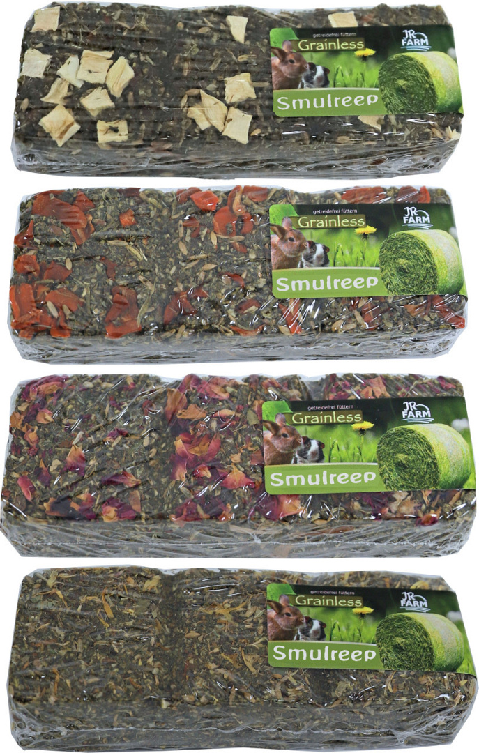 De JR Farm knaagdier Grainless smulreep is een gezonde korrelvrije reep met een heerlijke topping en veel hooi voor uitermate veel knabbelplezier.
