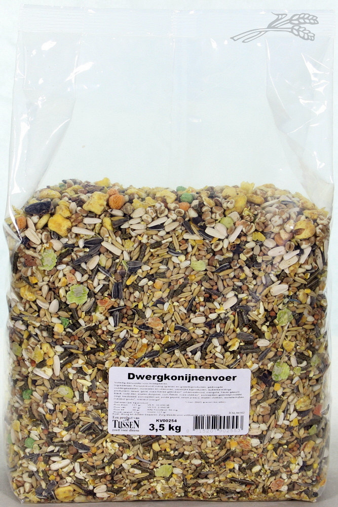 Dwergkonijnenvoer is een fijne samenstelling voor konijnen. De samenstelling is een aanvullende voeding.