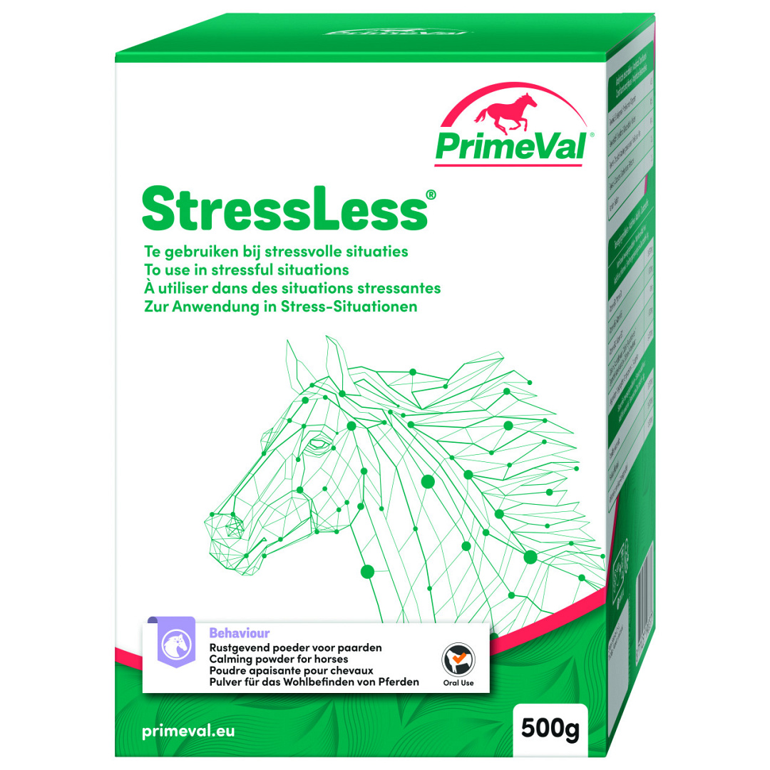 PrimeVal StressLess Poeder is een natuurlijk, rustgevend supplement. Het helpt nerveuze, hyperactieve en gespannen paarden ontspannen in stressvolle situaties, zónder dat het ten koste gaat van de alertheid. Dit supplement is uitermate geschikt voor gebruik tijdens transport, dierenarts- en hoefsmidbezoek, nieuwe of onbekende situaties en voor het leveren van (sport)prestaties.
